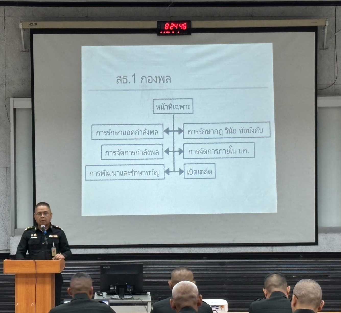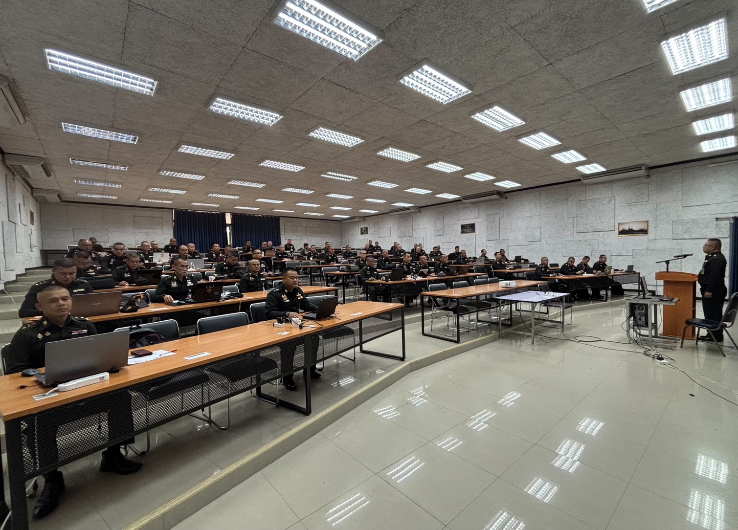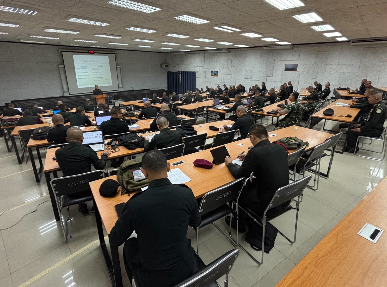 วันที่ 15 ธ.ค. 68 เวลา 0800 - 1700 แผนกวิชาฝ่ายอำนวยการ กศ.รร.ม.ศม. รับผิดชอบการฝึกอบรม หลักสูตรชั้นนายพัน เหล่า ม. ปี 69 ดำเนินการฝึกอบรม วิชาการแสวงข้อตกลงใจ ฝอ.1 อาจารย์ผู้สอน ร.อ.กล้าประจญ สาคำภีร์ ตำแหน่ง ฝอ.1 ม.พัน.27 ชรก.แผนกวิชาฝ่ายอำนวยการ กศ.รร.ม.ศม. ณ ห้องเรียน 150 ที่นั่ง