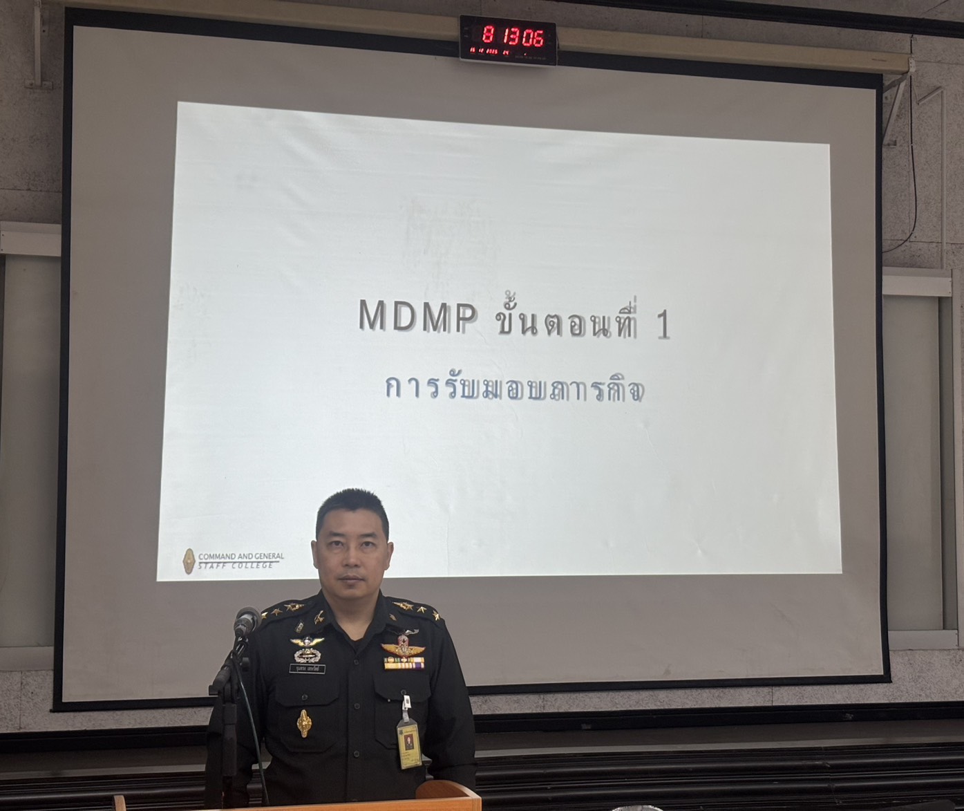 วันที่ 16 ธ.ค. 68 เวลา 0800 - 1700 แผนกวิชาฝ่ายอำนวยการ กศ.รร.ม.ศม. รับผิดชอบการฝึกอบรม หลักสูตรชั้นนายพัน เหล่า ม. ปี 69 ดำเนินการฝึกอบรม วิชาการแสวงข้อตกลงใจ ฝอ.3 อาจารย์ผู้สอน พ.อ.ชุมดวง เทพวัลย์ ตำแหน่ง นปก.ประจำ ศม. รรก.อจ.หน.วิชาฝ่ายอำนวยการ กศ.รร.ม.ศม. ณ ห้องเรียน 150 ที่นั่ง