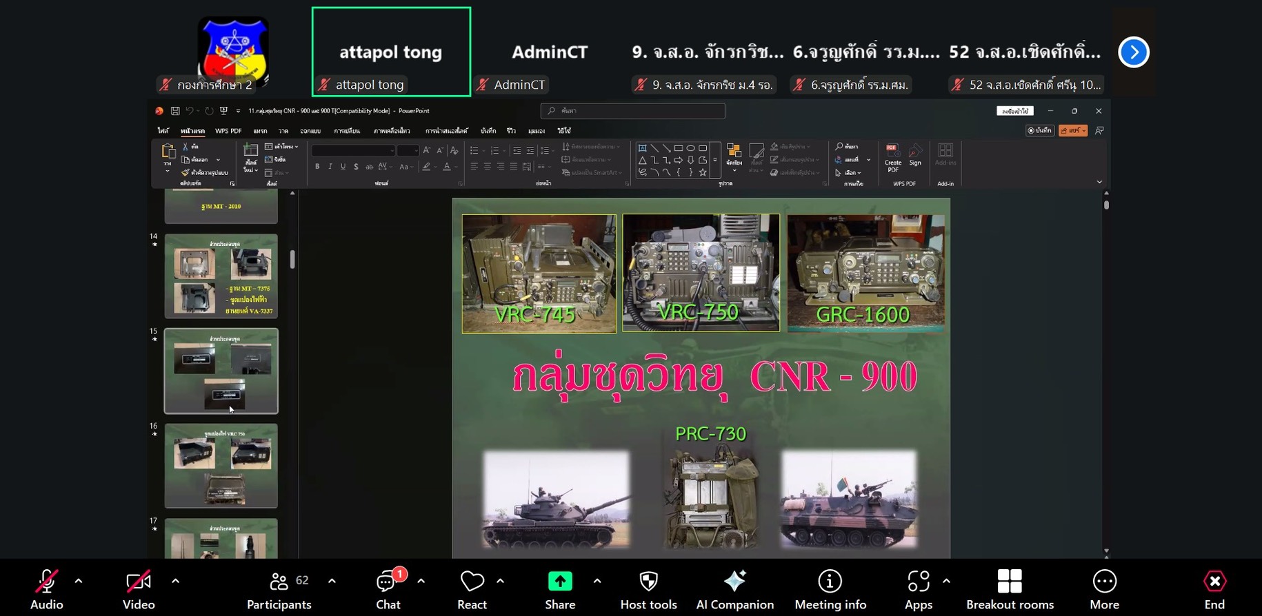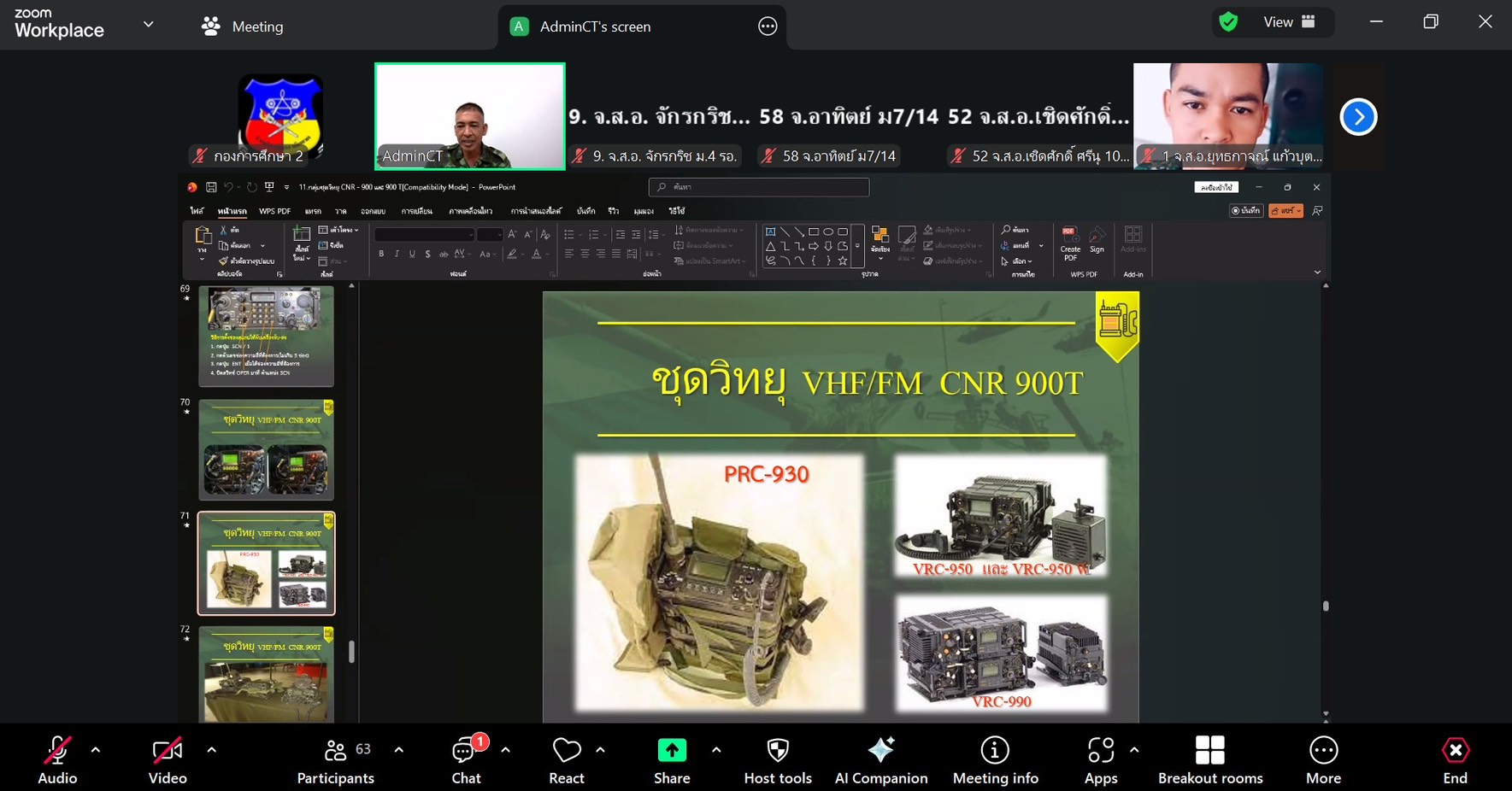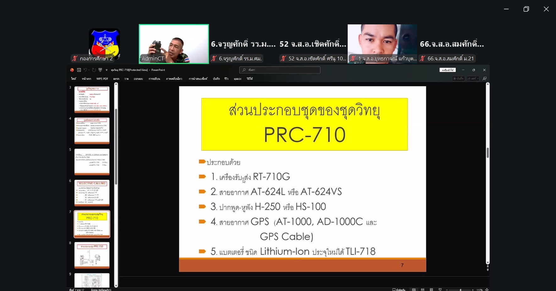วันที่ 23 ธ.ค. 68 เวลา 0800 - 1500แผนกวิชาสื่อสาร กศ.รร.ม.ศม. รับผิดชอบการฝึกอบรม หลักสูตรนายสิบอาวุโส เหล่า ม. ปี 69 ดำเนินการฝึกอบรม วิชากลุ่มชุดวิทยุ AN/PRC - 77, PRC - 710, และ PRC - 624 วิชากลุ่มชุดวิทยุ AN/VRC -12 และ AN/VRC - 1 วิชากลุ่มชุดวิทยุ CNR - 900 และ T900 และ วิชาเครื่องมือสื่อสารประเภททางสาย ผ่านระบบ ZOOM Cloud Meeting อาจารย์ผู้สอน จ.ส.อ.รุ่งแสง ภู่งามชื่น ครู แผนกวิชาสื่อสาร กศ.รร.ม.ศม.