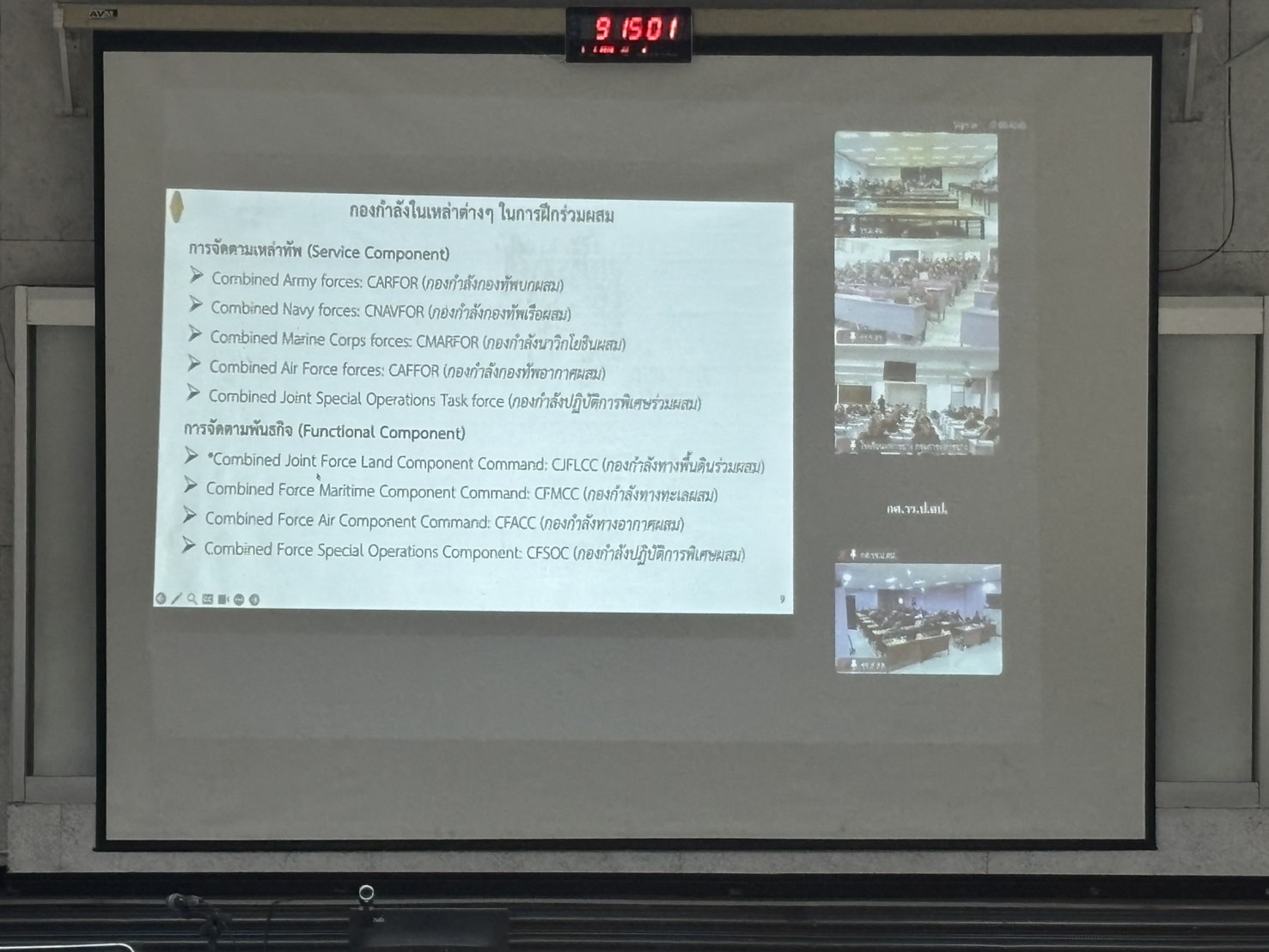 เมื่อวันที่ 5 ม.ค. 69 เวลา 0800 - 1700 แผนกวิชาฝ่ายอำนวยการ กศ.รร.ม.ศม. รับผิดชอบการฝึกอบรม วิชา การยุทธ์ร่วม, ระบบปฏิบัติการในสนามรบ 7 ประการ (BOS 7) หลักสูตรชั้นนายพัน เหล่า ม. ปี 69 อาจารย์ผู้สอน พ.ต.ธนพัฒน์ บูรณะศักดิ์สกุล ตำแหน่ง อจ.รร.สธ.ทบ ณ อาคารเรียนรวม 150 ที่นั่ง