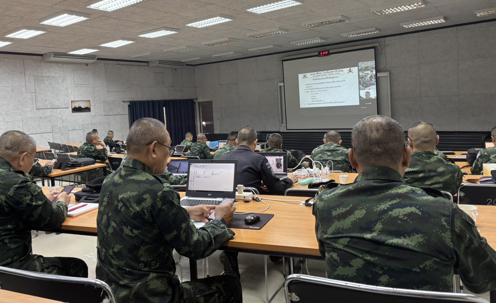 วันที่ 13 ม.ค. 69 เวลา 0800 - 1700 แผนกวิชาฝ่ายอำนวยการ กศ.รร.ม.ศม. โดย พ.ต.คมศักดิ์ ดาวไธสง ตำแหน่ง อจ.ยว.กศ.รร.ป.ศป. รับผิดชอบการฝึกอบรม วิชายุทธวิธีของเหล่า ป. (ป.สนาม), ยุทธวิธีของเหล่า ป. (ปตอ.) ให้กับ นทน. หลักสูตรชั้นนายพัน เหล่า ม. ปี 69 ณ อาคารเรียน 150 ที่นั่ง