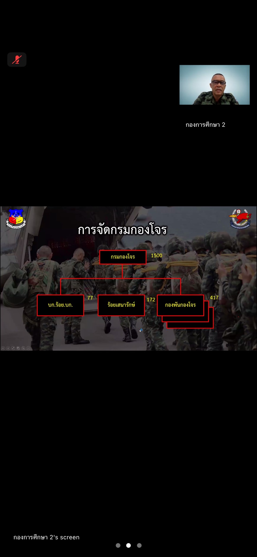 เมื่อวันที่ 12 ม.ค. 69 เวลา 0800-1200 แผนกวิชาการรบพิเศษ กศ.รร.ม.ศม. ดำเนินการฝึกอบรม วิชาหลักพื้นฐานการปฏิบัติการพิเศษ ผู้สอน ร.อ.พันธ์ศักดิ์ ดีศรี, วิชาการป้องกันและปราบปรามการก่อความไม่สงบ ผู้สอน ร.อ. วิศิษฐ์ ทองอินทร์ และ วิชาการต่อต้านการก่อการร้าย ผู้สอน พ.ท.ชานนท์ ลิ้มนุกูล ผ่านระบบ ZOOM Cloud Meeting ให้กับ นสน. หลักสูตรนายสิบชั้นต้น รุ่นที่ 1 ปี 69 ห้วงศึกษาผ่านสื่ออิเล็กทรอนิกส์