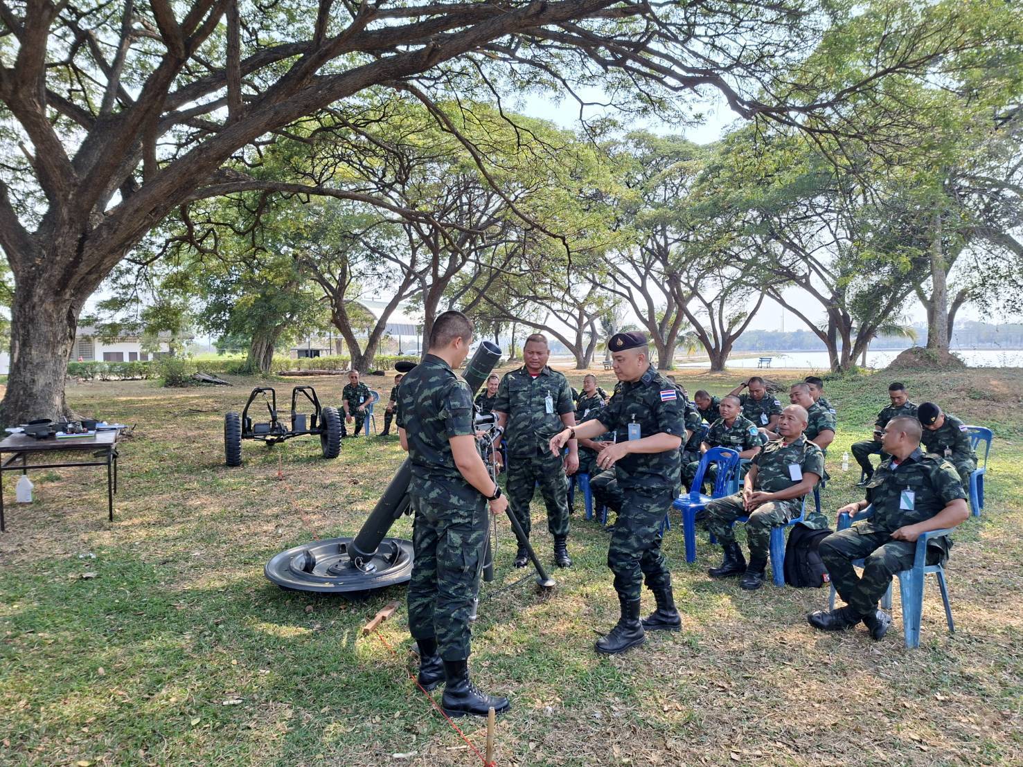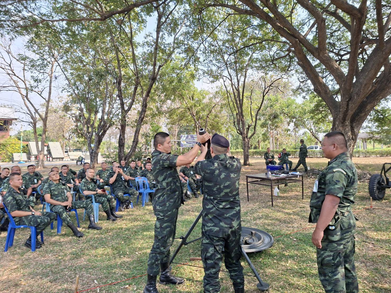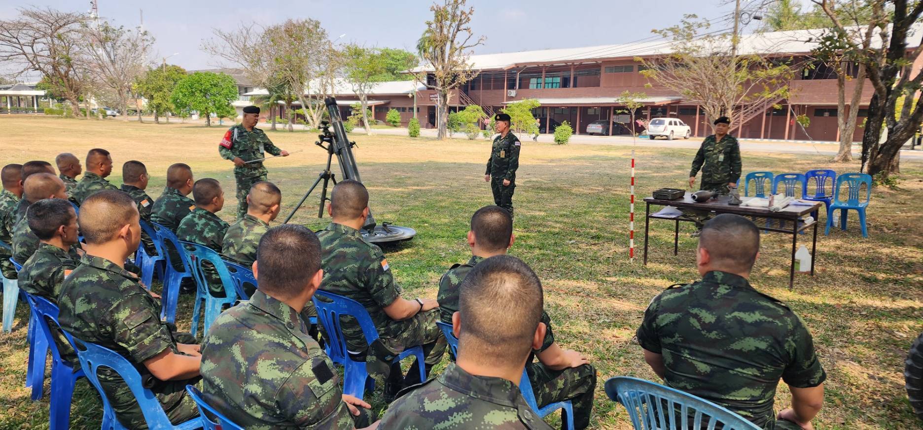วันที่ 16 ม.ค. 69 เวลา 0800-1700 แผนกวิชาอาวุธ กศ.รร.ม.ศม. โดย พ.ท. ศรายุทธ ทรัพย์พันแสน อจ.รร.ป.ศป. ดำเนินการฝึกอบรม วิชาการยิงที่มีการตรวจการณ์ปืนใหญ่ และ ฝึกปฏิบัติวิชาเครื่องยิงลูกระเบิด ณ สนามฝึกด้านหน้าแผนกวิชาอาวุธฯ โดยแบ่งการฝึกออกเป็น ๒ สถานี (การใช้กล้องกองร้อยชนิดเข็มทิศ M2A2 และ ค.ขนาด ๑๒๐ มม.) โดย อจ., ครู และ ผช.ครู ฯ ให้กับ นสน. หลักสูตรนายสิบอาวุโส เหล่า ม. รุ่นที่ 1 ปี 69 ณ ห้องเรียน อว.1