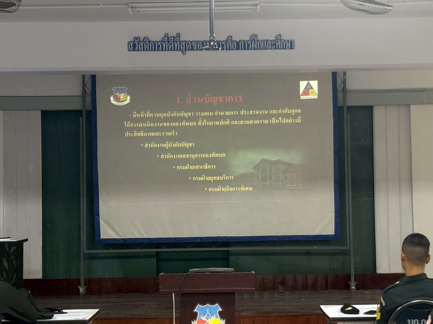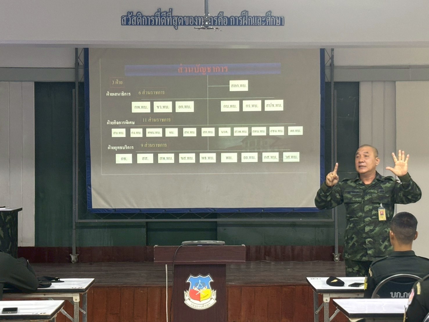 เมื่อวันที่ 5 ก.พ. 69 เวลา 0800 - 1700 แผนกวิชาฝ่ายอำนวยการ กศ.รร.ม.ศม. ดำเนินการฝึกอบรม วิชา งานในหน้าที่ ฝอ., ระเบียบการนำหน่วย, ปลูกฝังอุดมการณ์ฯ ให้กับ หลักสูตรนายสิบชั้นต้น เหล่า ม. รุ่นที่ 1 ปี 69 ณ ห้องเรียนแผนกวิชาฝ่ายอำนวยการ