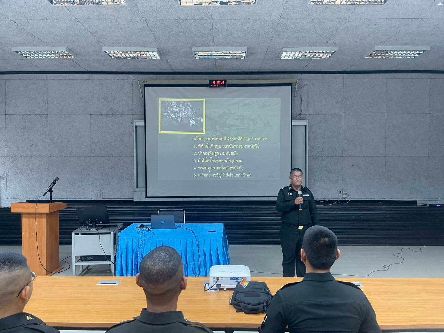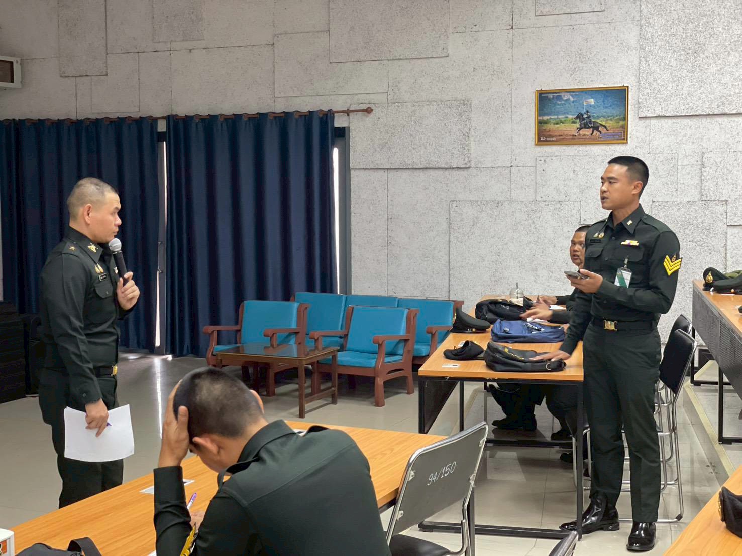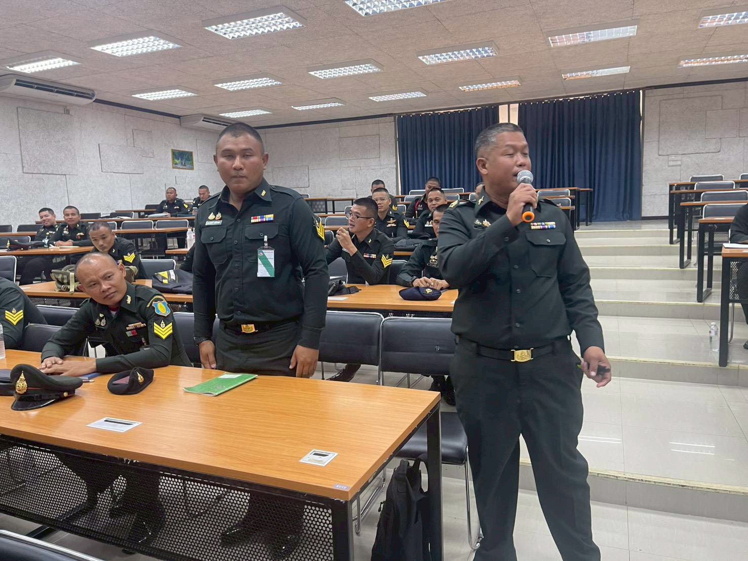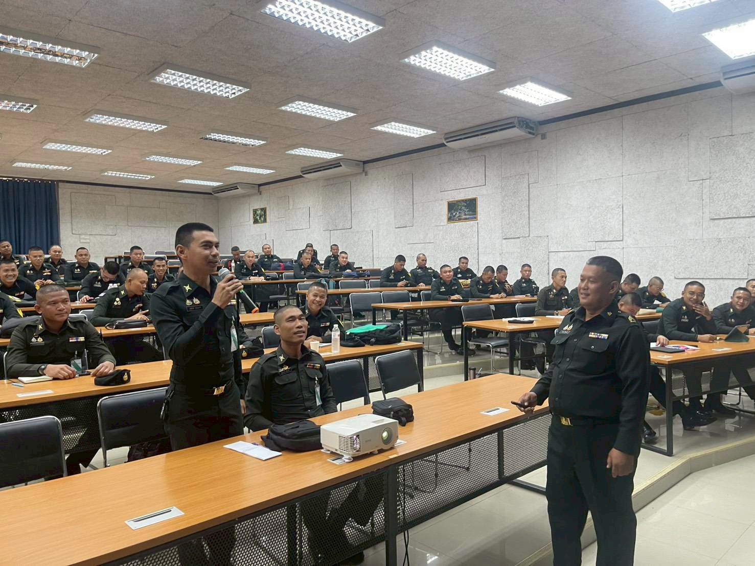 เมือวันที่ 9 ก.พ. 69 เวลา 0800 - 1700 แผนกวิชาทั่วไป กศ.รร.ม.ศม. ดำเนินการฝึกอบรม วิชาครูทหารและการฝึกที่เน้นผลการปฏิบัติฯ และ วิชาภาษาอังกฤษ ให้กับ หลักสูตรนายสิบชั้นต้น เหล่า ม. รุ่นที่ 1 ปี 69 ณ อาคารเรียนรวม 150 ที่นั่ง