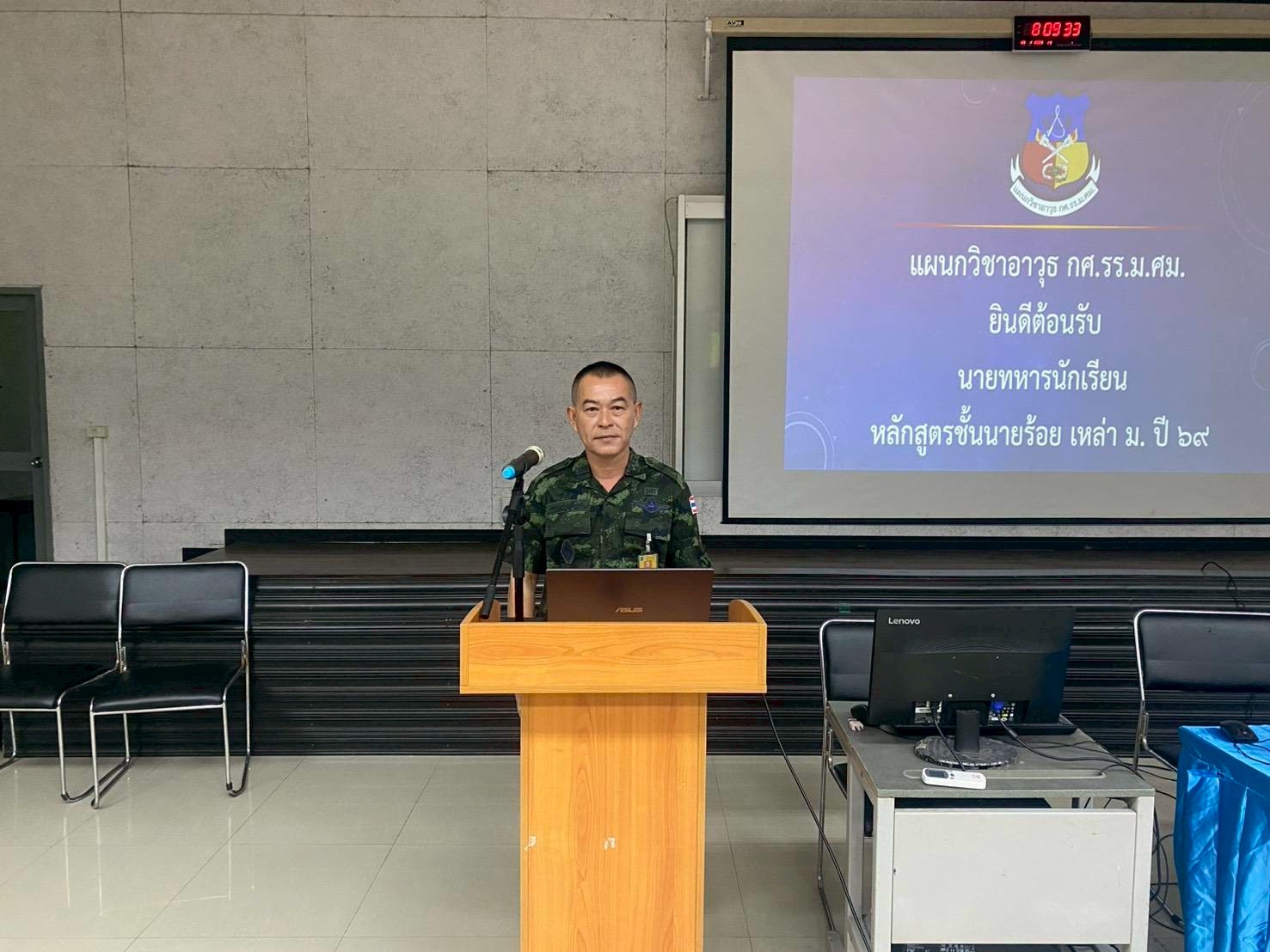 ✅ เวลา 0800 - 0815 พ.อ. ศรายุทธ สุขสุทธิ อจ.หน.วิชาอาวุธ กศ.รร.ม.ศม. กล่าวแนะนำ/นิเทศการฝึกอบรมฯ