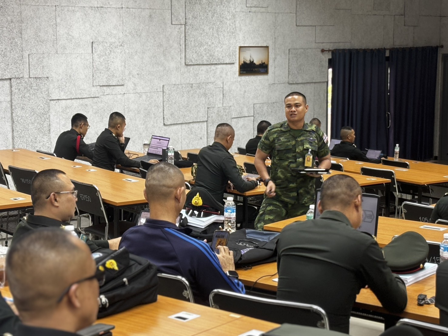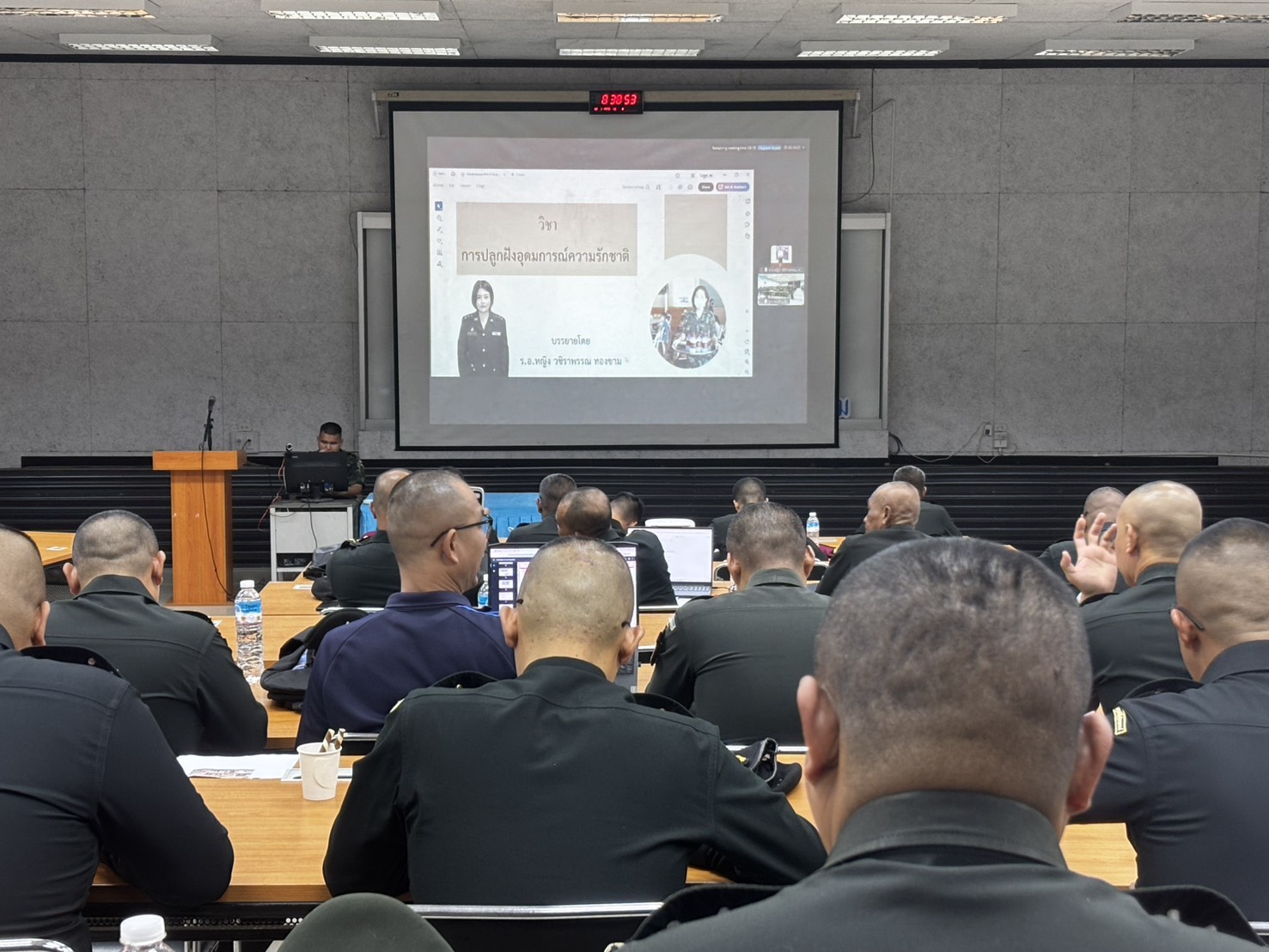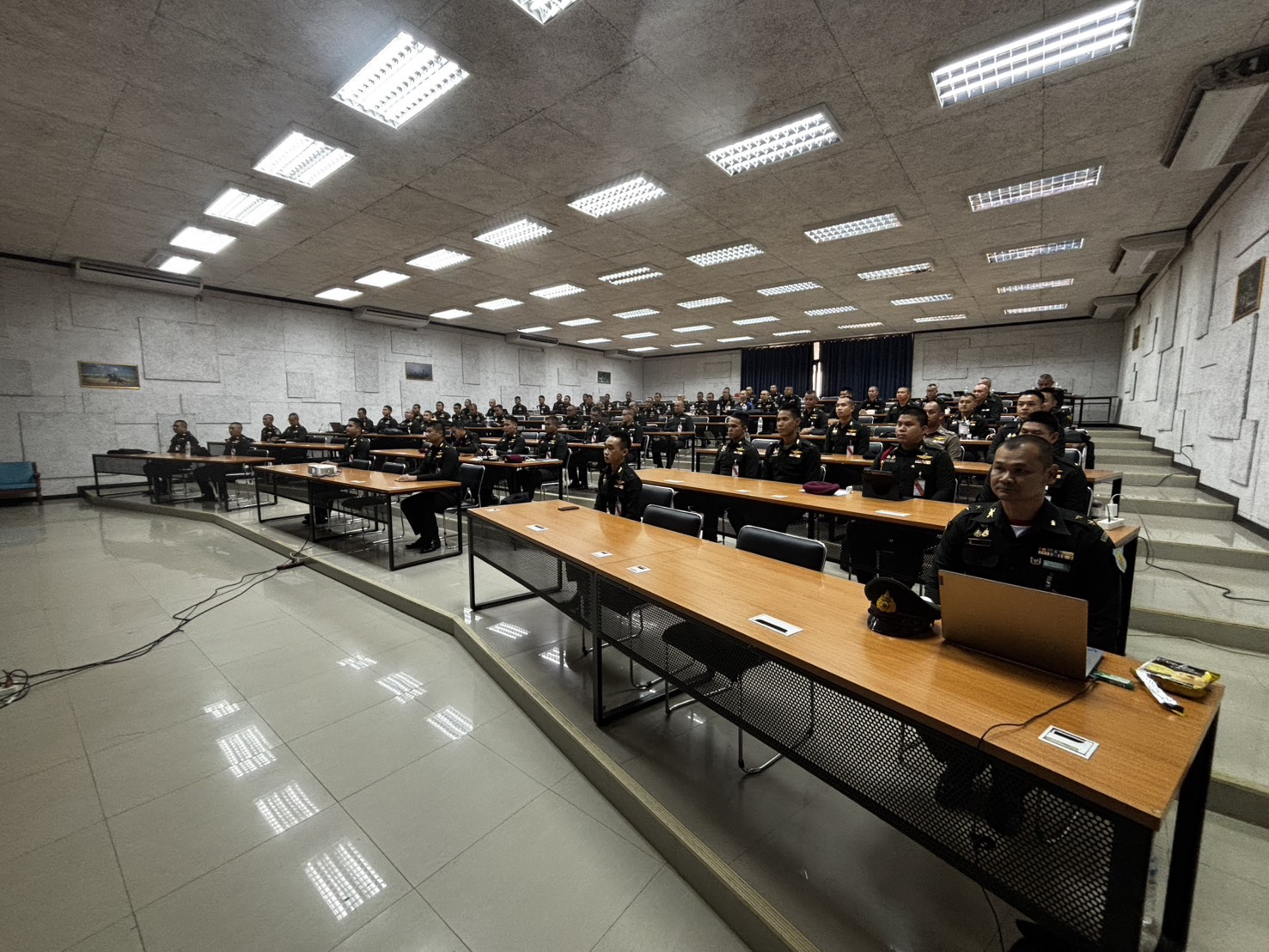 วันจันทร์ที่ 23 มี.ค. 69 เวลา 0800 - 1700 แผนกวิชาฝ่ายอำนวยการ กศ.รร.ม.ศม. โดย ร.อ.หญิง วชิราพรรณ ทองขาม ตำแหน่ง อจ.รร.กร.กร.ทบ. และ ร.ท.คณกร แก้วหอม ตำแหน่ง ผบ.มว.พัน.บร.กบร.ศม. ชรก.แผนกวิชาฝ่ายอำนวยการ กศ.รร.ม.ศม. รับผิดชอบการฝึกอบรม วิชาการปลูกฝังอุดมการณ์ความรักชาติ และ วิชา สธ.5 กิจการพลเรือน หลักสูตรชั้นนายร้อย เหล่า ม. ปี 69 ณ อาคารเรียนรวม 150 ที่นั่ง