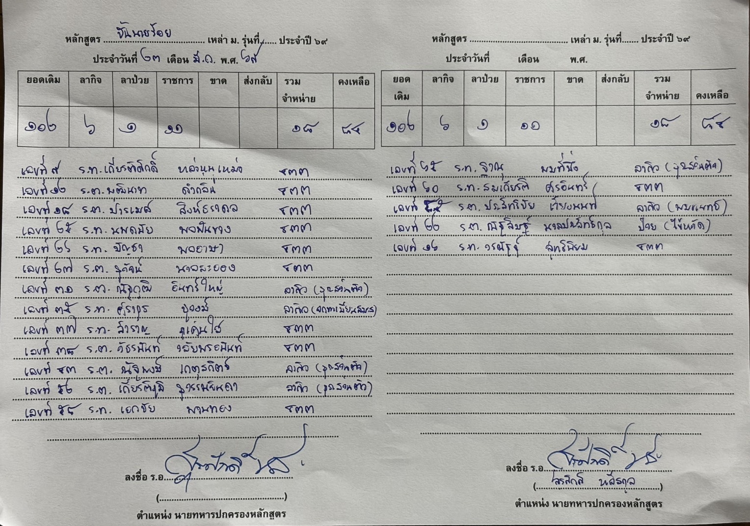 - หลักสูตรชั้นนายร้อย เหล่า ม. ปี 69
