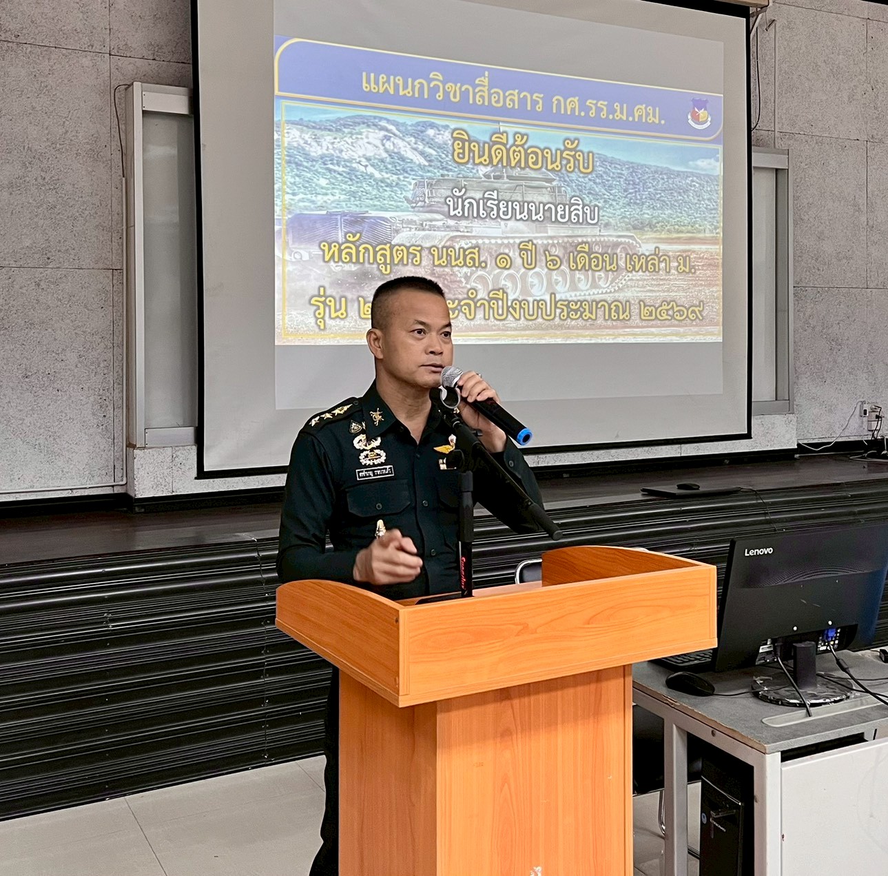 วันพุธที่ 4 มี.ค. 69 เวลา 1300 - 1700 แผนกวิชาสื่อสาร กศ.รร.ม.ศม. รับผิดชอบการฝึกอบรม วิชาการสื่อสารทั่วไป และ วิชาหลักวิทยุเบื้องต้น หลักสูตร นนส. 1 ปี 6 เดือน รุ่นที่ 29 เหล่า ม. ปี 69 ณ ห้องเรียนรวม1 (150 ที่นั่ง)
