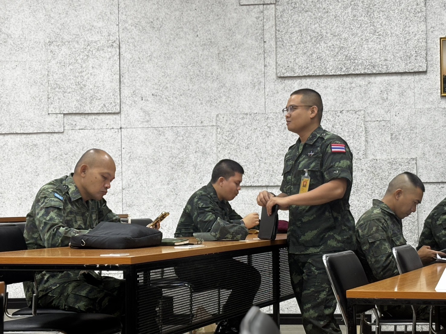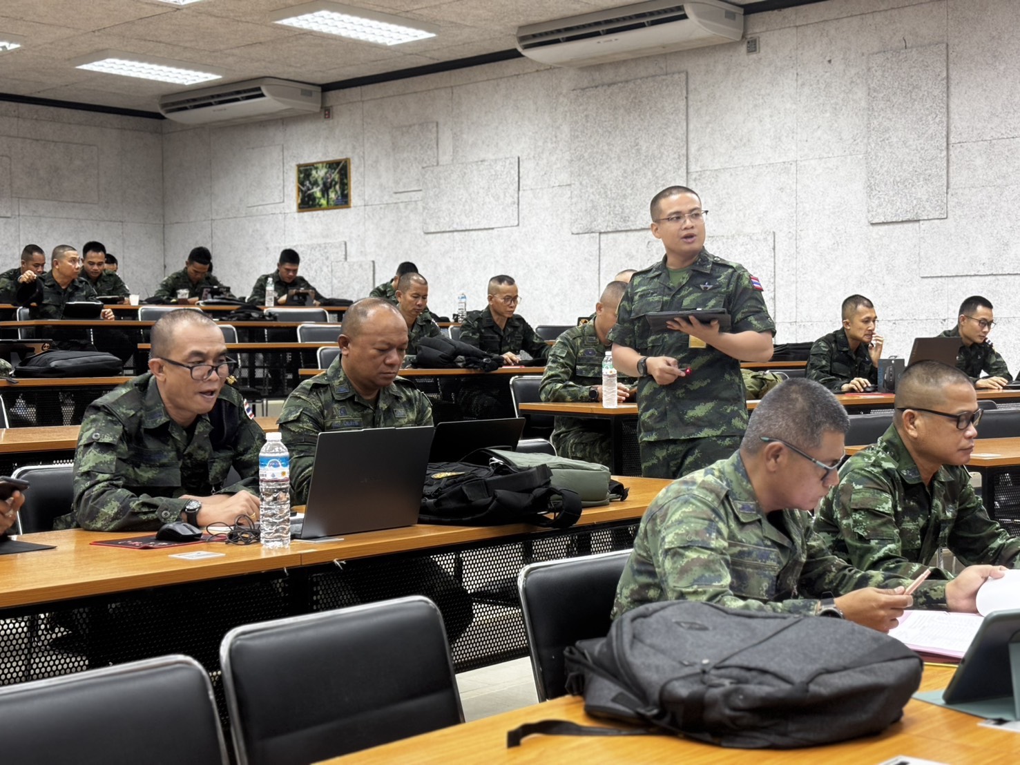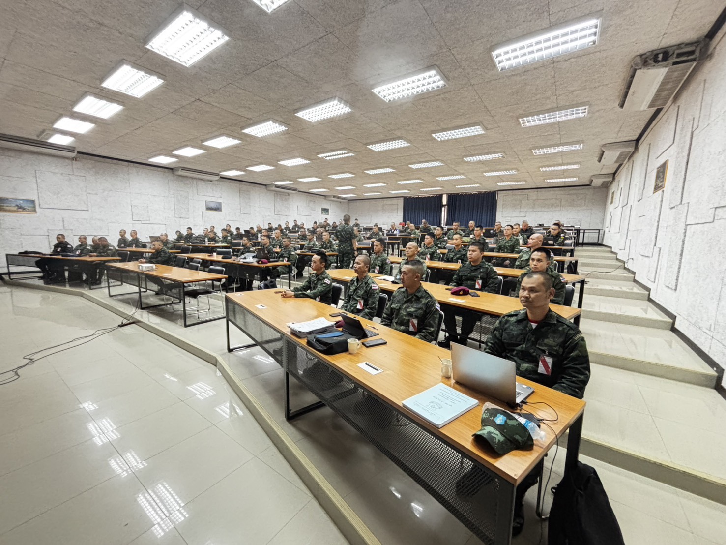 วันอังคาร ที่ 24 มี.ค. 69 เวลา 0800 - 1500 แผนกวิชาฝ่ายอำนวยการ กศ.รร.ม.ศม. โดย ร.ท.คณกร แก้วหอม ตำแหน่ง ผบ.มว.พัน.บร.กบร.ศม. ชรก.แผนกวิชาฝ่ายอำนวยการ กศ.รร.ม.ศม. รับผิดชอบการฝึกอบรม วิชา สธ.5 กิจการพลเรือนและการแสวงข้อตกลงใจ หลักสูตรชั้นนายร้อย เหล่า ม. ปี 69 ณ อาคารเรียนรวม 150 ที่นั่ง