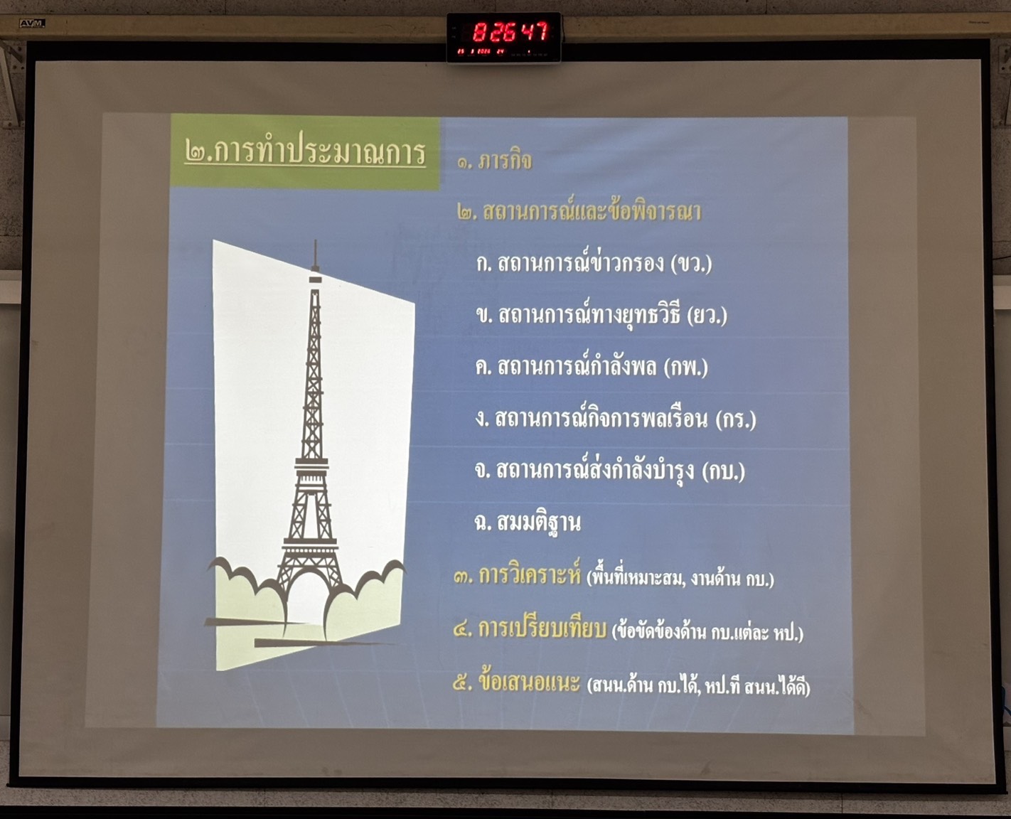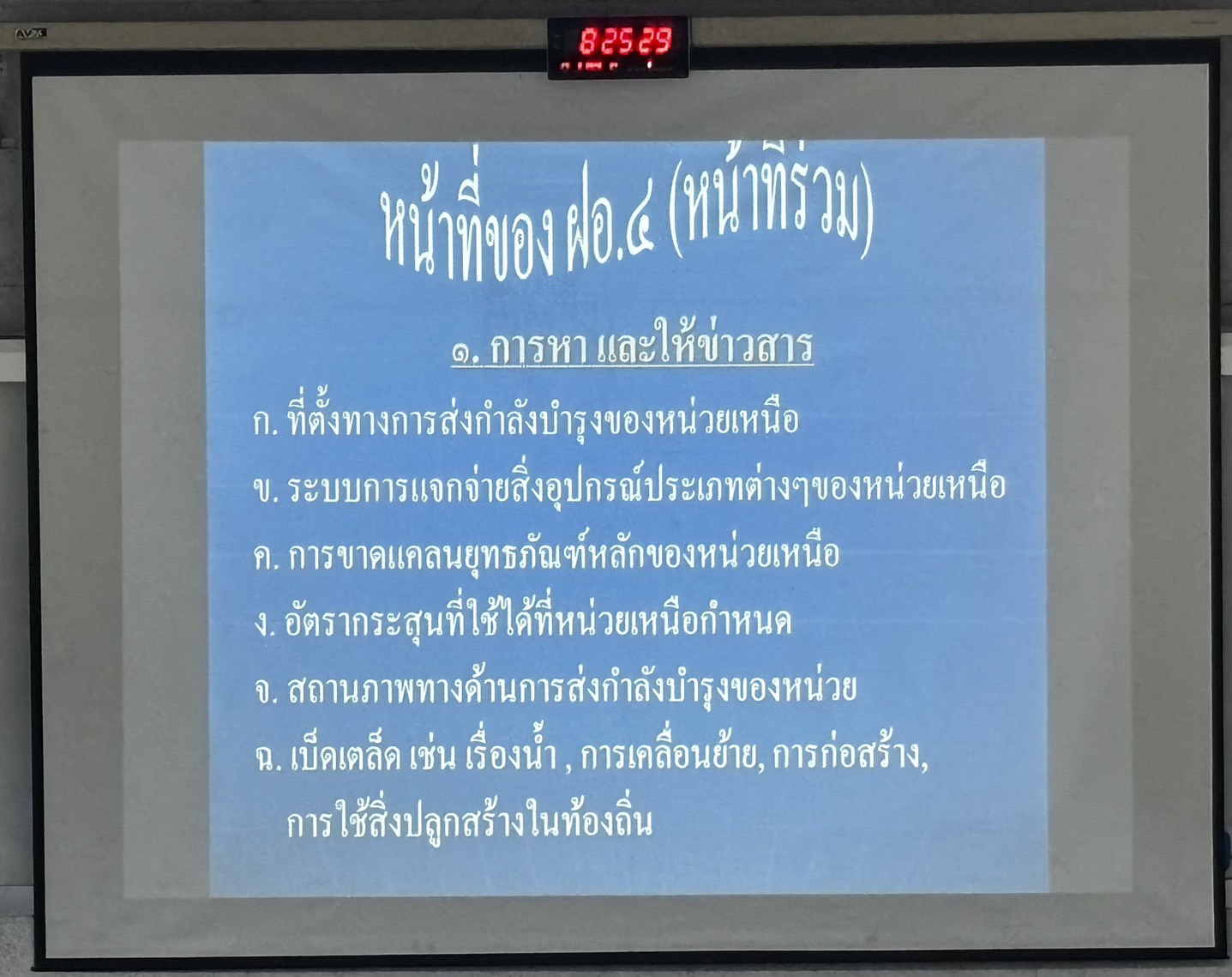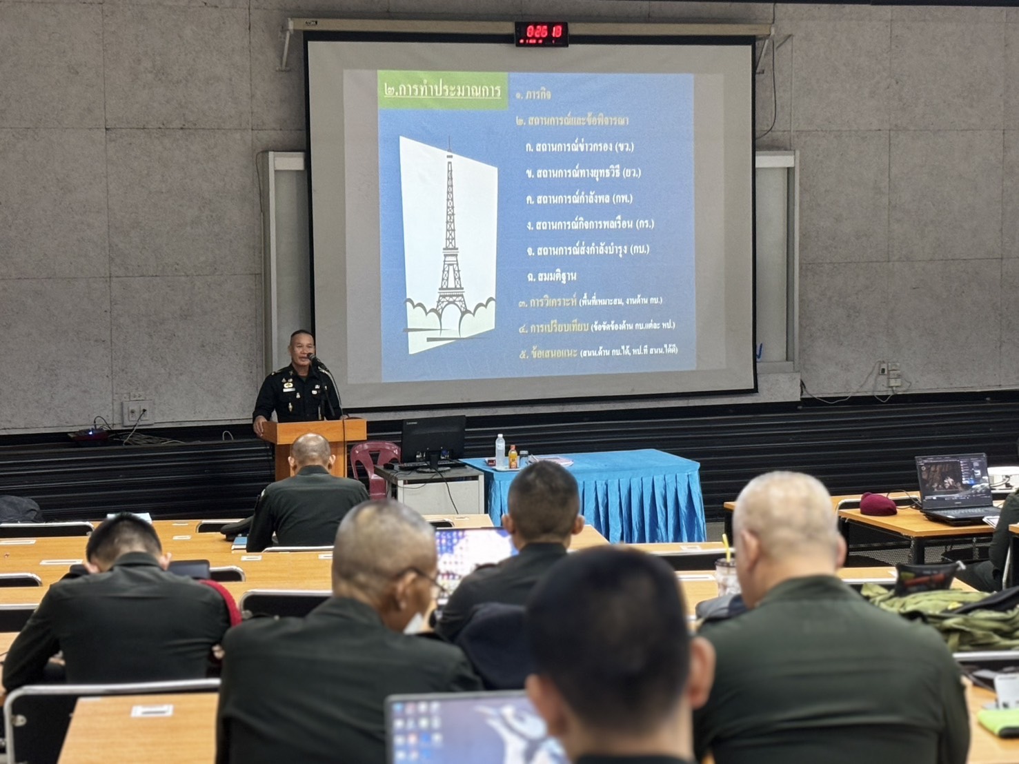 วันพุธที่ 25 มี.ค. 69 เวลา 0800 - 1700 แผนกวิชาฝ่ายอำนวยการ กศ.รร.ม.ศม. โดย พ.ท.จาตุรงค์ แก้วสุวรรณ์ ตำแหน่ง อจ.แผนกวิชาฝ่ายอำนวยการ กศ.รร.ม.ศม. รับผิดชอบการฝึกอบรม วิชา สธ.4 การส่งกำลังบำรุงและการแสวงข้อตกลงใจ หลักสูตรชั้นนายร้อย เหล่า ม. ปี 69 ณ อาคารเรียนรวม 150 ที่นั่ง