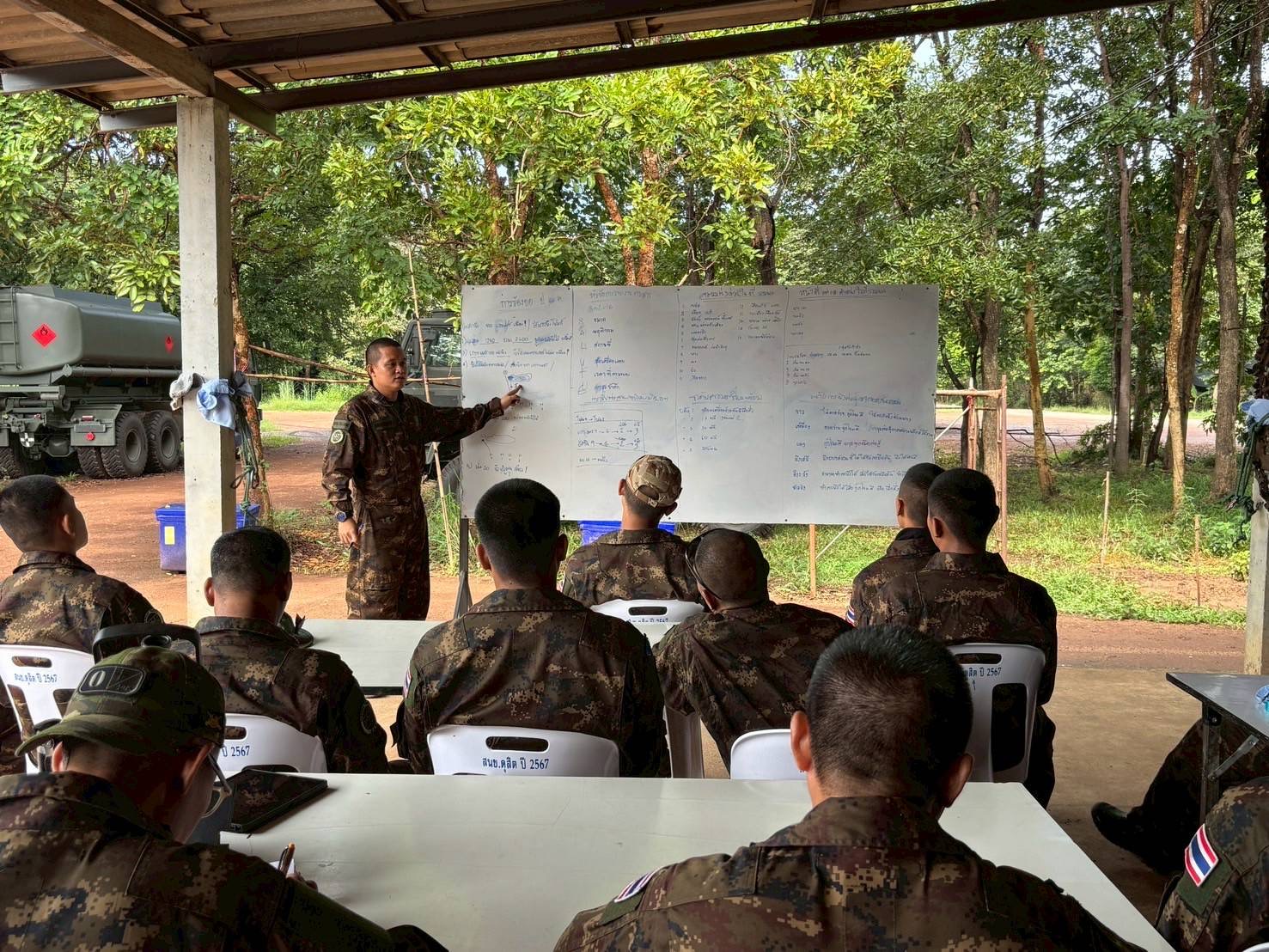 ทำการฝึก Unit School ในเรื่องการเข้าตี การออกคำสั่งภายใน มว.ถ ของ ม.พัน.4 ที่ปฏิบัติภารกิจปกป้องชายแดน จ.สระแก้ว