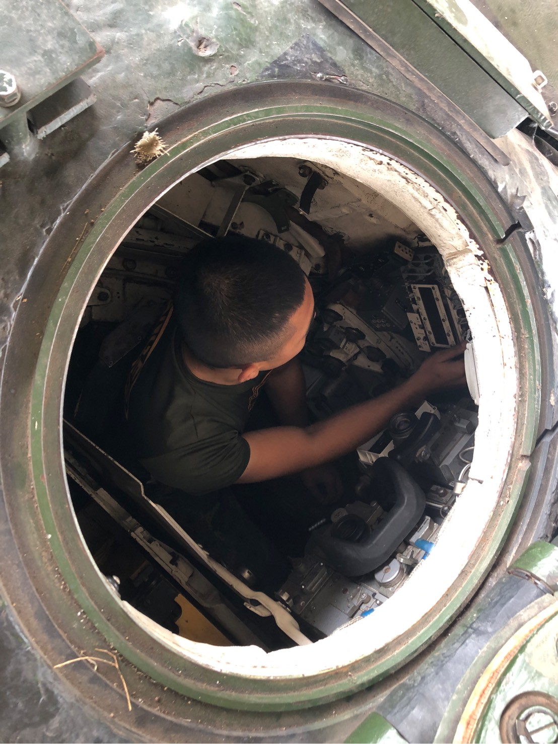 ส.อ.สิรภพ ยางธิสาร ม.พัน.2 ได้นำความรู้ในการเรียน ส.ชั้นต้น ในเรื่องการปรนนิบัติบำรุงยานยนต์ตามวงรอบประจำวัน ทดสอบระบบการรั่วไหลของน้ำมันและระบบเครื่องยนต์ จากแผนกยานยนต์ เพื่อให้ยานยนต์ในหน่วยใช้งานได้ปกติ