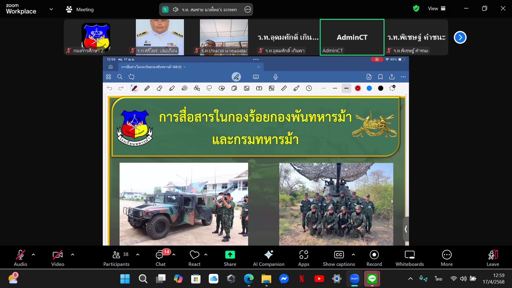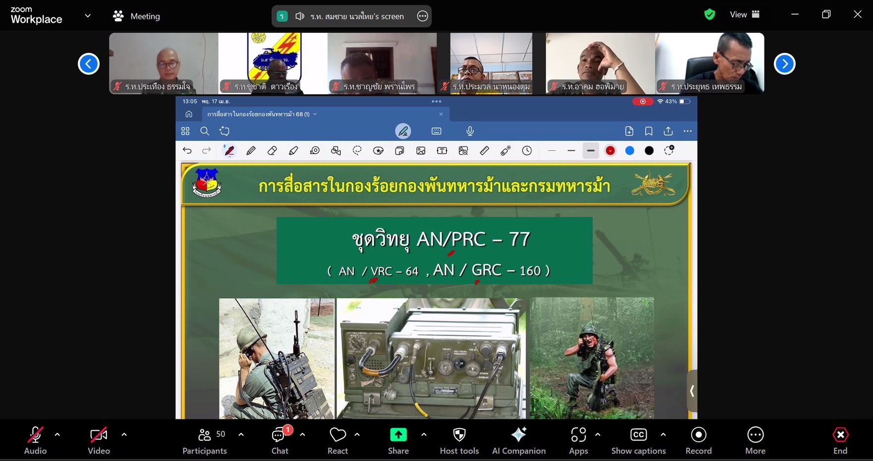 เมื่อวันที่ 17 เม.ย. 68 เวลา 08000 - 1500 แผนกวิชาสื่อสาร กศ.รร.ม.ศม. ดำเนินการฝึกอบรม วิชาการสื่อสารในที่บังคับการ , วิชาคำสั่ง,บันทึก และรายงาน และ วิชาการติดต่อสื่อสารในกองร้อยและกองพันทหารทหารม้า ให้กับ หลักสูตรชั้นนายทั่วไป (ศึกษาผ่านสื่ออิเล็กทรอนิกส์) ปี 68