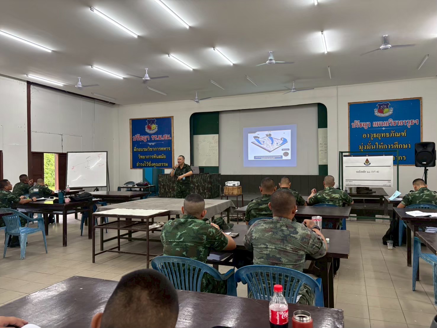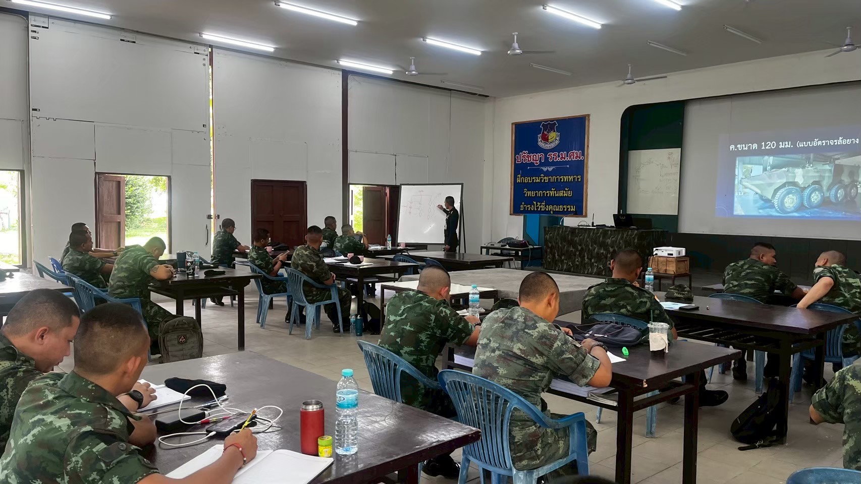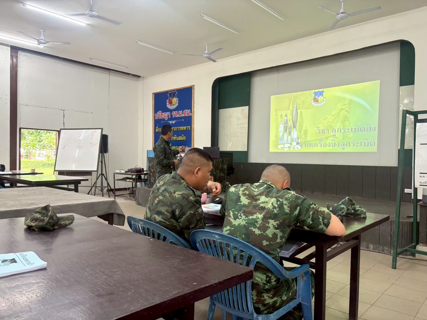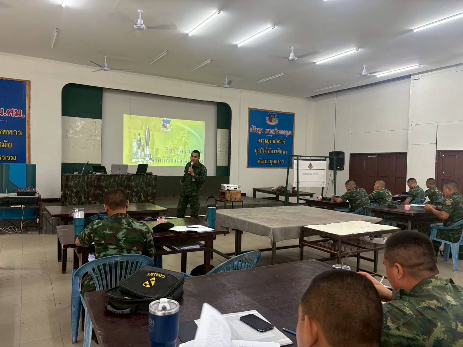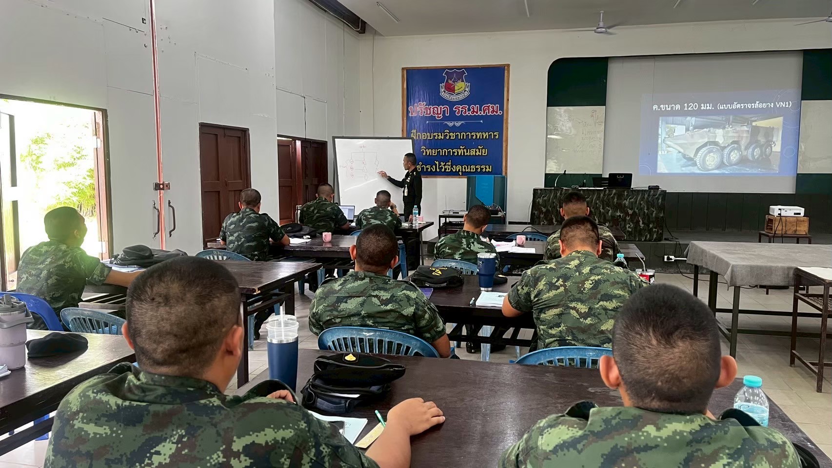 เมื่อวันที่ 8 ก.ค. 68 เวลา 0800-1600 แผนกวิชาอาวุธ กศ.รร.ม.ศม. ดำเนินการฝึกอบรมฝึกอบรมวิชา ค.120 มม.  (ATMM), ค.120 มม. VN1, เครื่องเล็งและเครื่องประกอบการเล็ง ค., ลย./ค, ตารางยิง ค. และแผ่นกรุยจุด M16 ให้กับ นสน. หลักสูตร ซบร.อาวุธของหน่วย เหล่า ม. ประจำปี 68 ณ ห้องเรียนแผนกวิชาอาวุธ