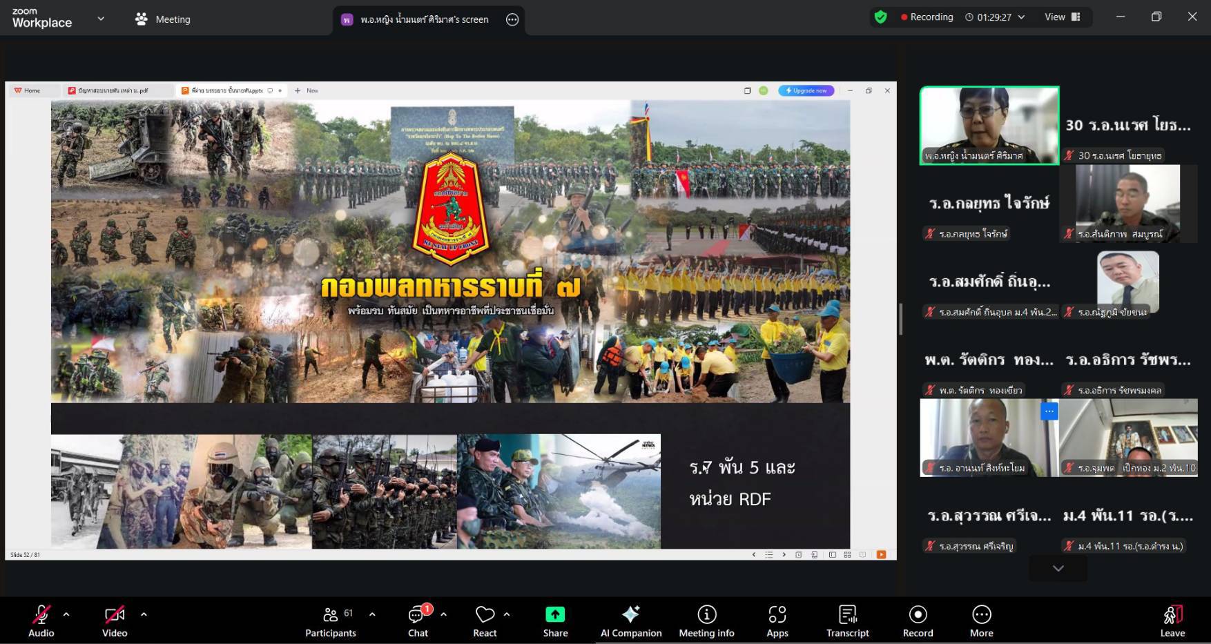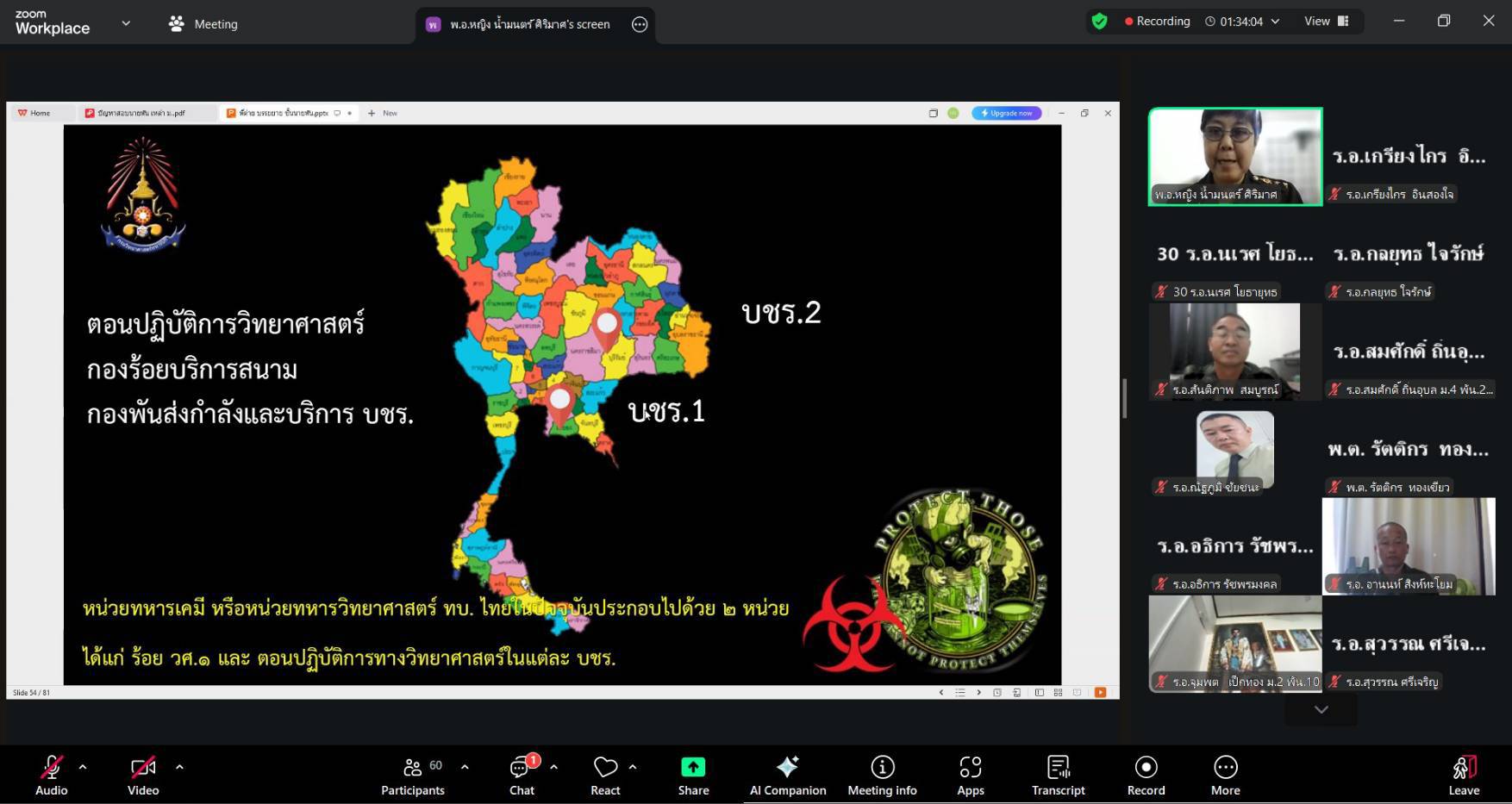 เมื่อวันที่ 10 ต.ค. 68 เวลา 1000-1200 แผนกวิชาทั่วไป กศ.รร.ม.ศม. โดย พ.อ.หญิง น้ำมนต์  ศิริมาศ อจ.หน.รร.วศ.ทบ. ดำเนินการฝึกอบรม วิชา เคมี-ชีวะ-รังสี-นิวเคลียร์ ผ่านระบบ Zoom Cloud Meeting ให้กับ นทน.หลักสูตรชั้นนายพัน เหล่า ม. ปี 69 (ห้วงฝึกอบรมด้วยตนเอง ณ ที่ตั้งหน่วย)