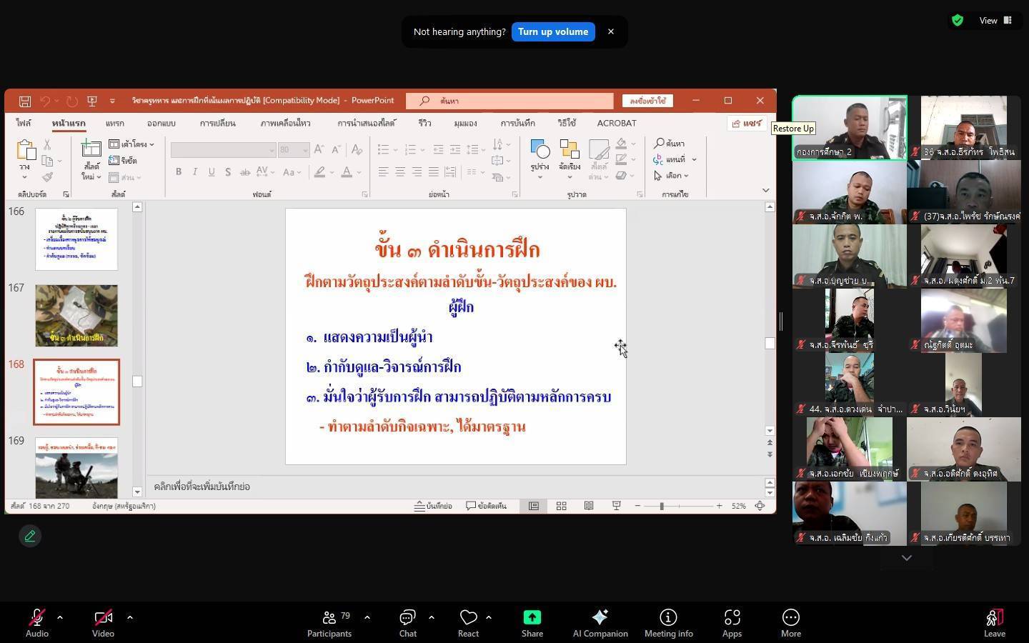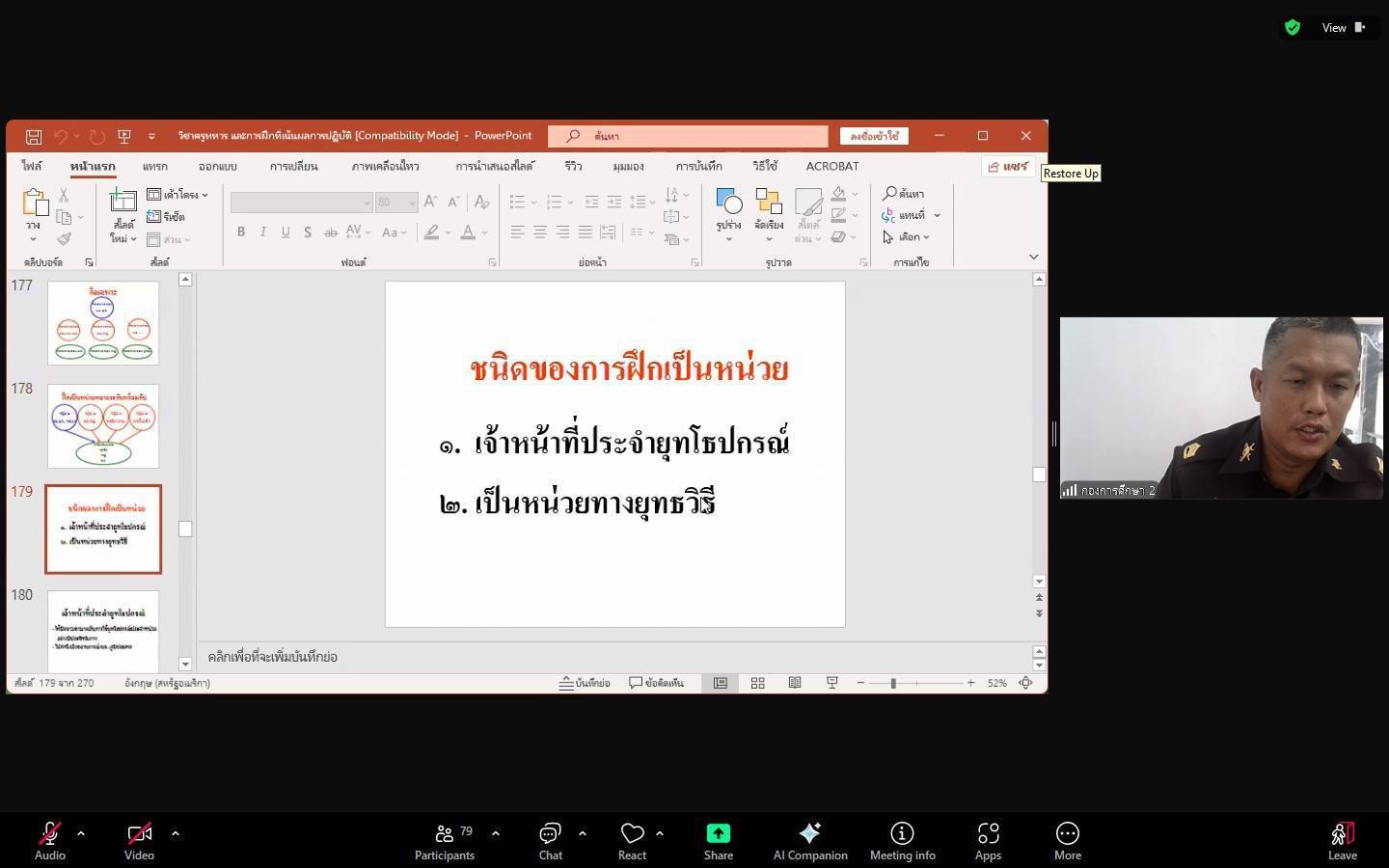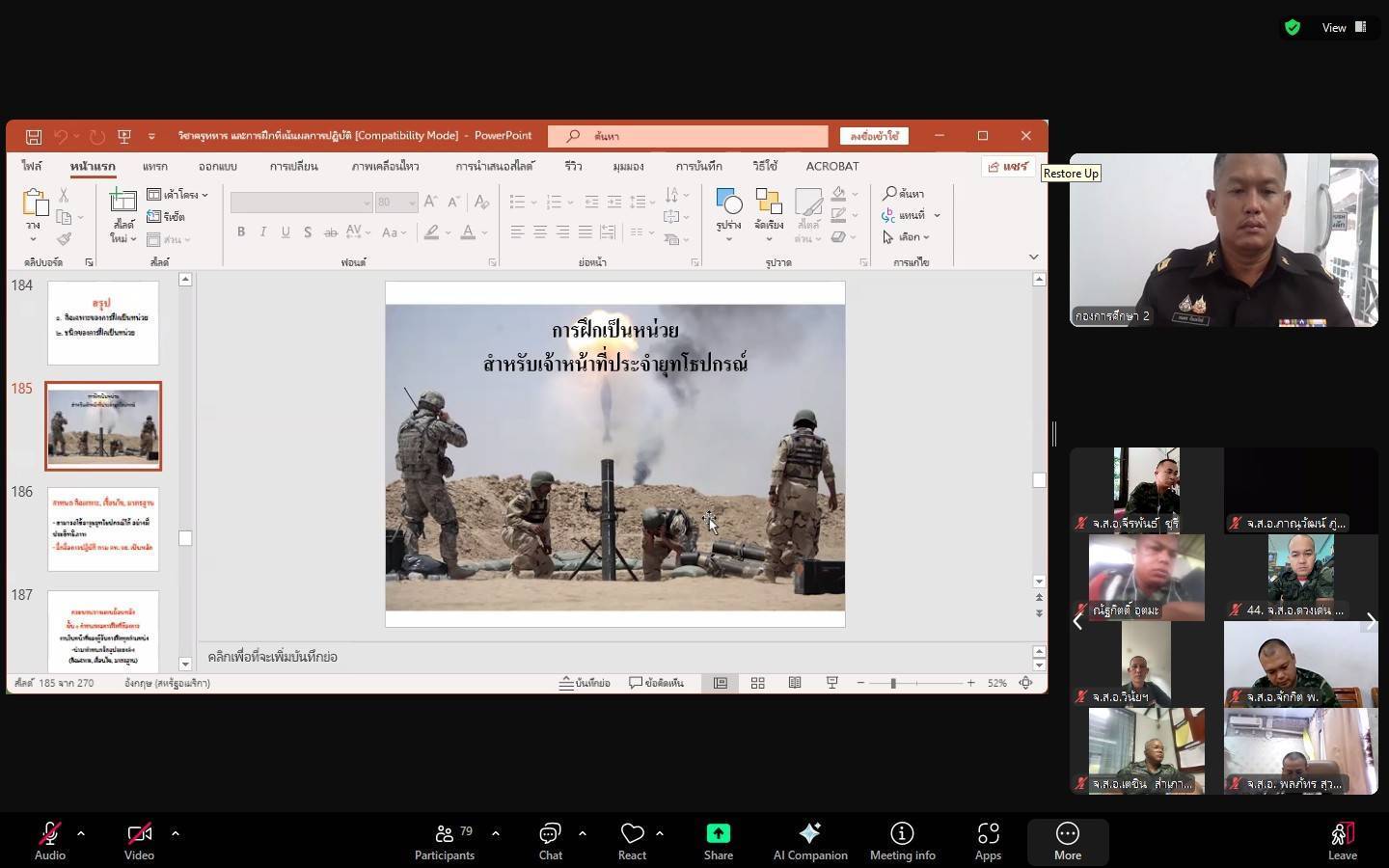 เมื่อวันที่ 30 พ.ค. 68 แผนกวิชาทั่วไป กศ.รร.ม.ศม. ดำเนินการฝึกอบรม วิชาครูทหาร ผ่านระบบ ZOOM Cloud Meeting ให้กับ นสน. หลักสูตรนายสิบอาวุโส เหล่า ม. รุ่นที่ 3 ปี 68 (ห้วงฝึกอบรมผ่านสื่ออิเล็กทรอนิกส์ ณ ที่ตั้งหน่วย)