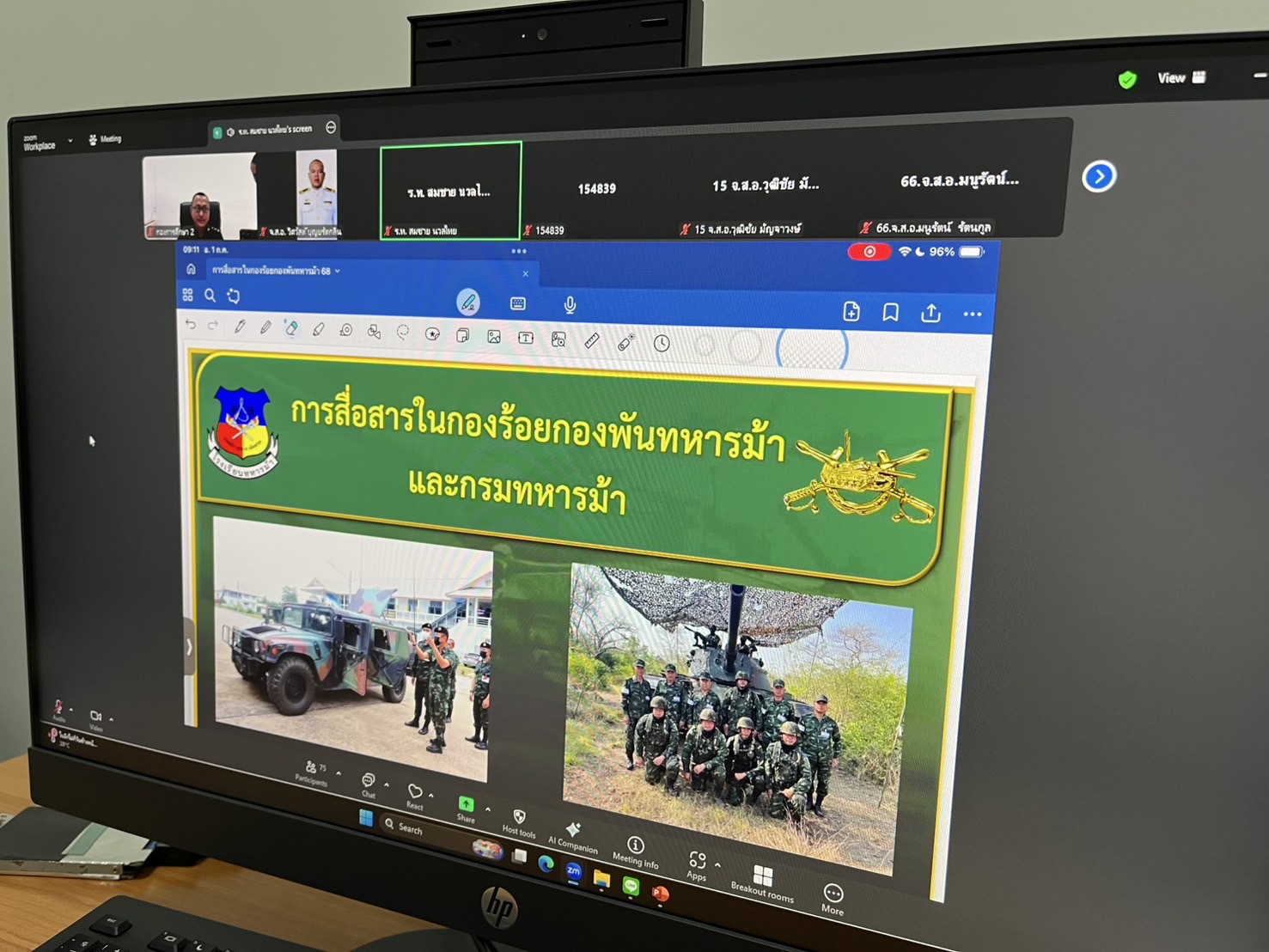 เมื่อวันที่ 1 ก.ค. 68 แผนกวิชาสื่อสาร กศ.รร.ม.ศม. ดำเนินการฝึกอบรม วิชาการรักษาความปลอดภัยทางการสื่อสาร และ วิชาการสื่อสารในกองร้อยและกองพันทหารม้า ผ่านระบบ ZOOM Cloud Meeting ให้กับ นสน. หลักสูตรนายสิบอาวุโส เหล่า ม. รุ่นที่ 3 ปี 68 (ห้วงฝึกอบรมผ่านสื่ออิเล็กทรอนิกส์ ณ ที่ตั้งหน่วย)