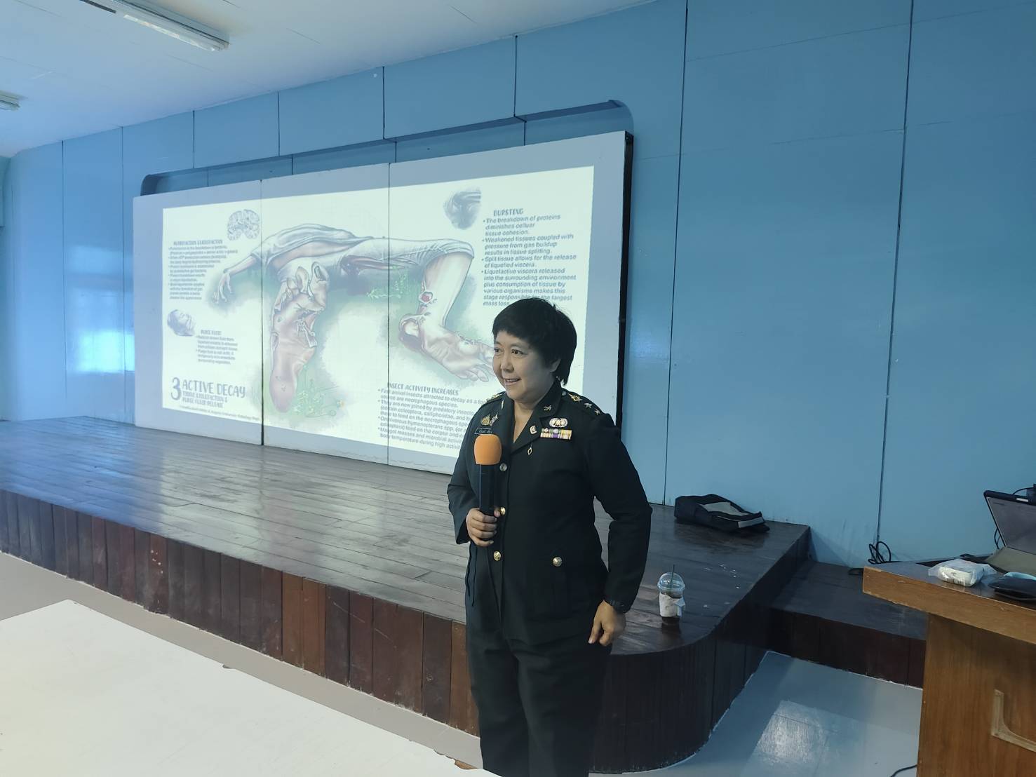 เมื่อวันที่ 20 ส.ค. 68 เวลา 0800-1600 แผนกวิชาทั่วไป กศ.รร.ม.ศม. โดย พ.อ.หญิง น้ำมนต์  ศิริมาศ อจ.หน.ผวท.รร.วศ.ทบ.(อจ.ภายนอก) ดำเนินการฝึกอบรม วิชา เคมี ชีวะ รังสี นิวเคลียร์ ให้กับ นสน. หลักสูตรนายอาวุโส เหล่า ม. รุ่นที่ 3 ปี 68 ณ ห้องเรียนสิริทนุกิจ