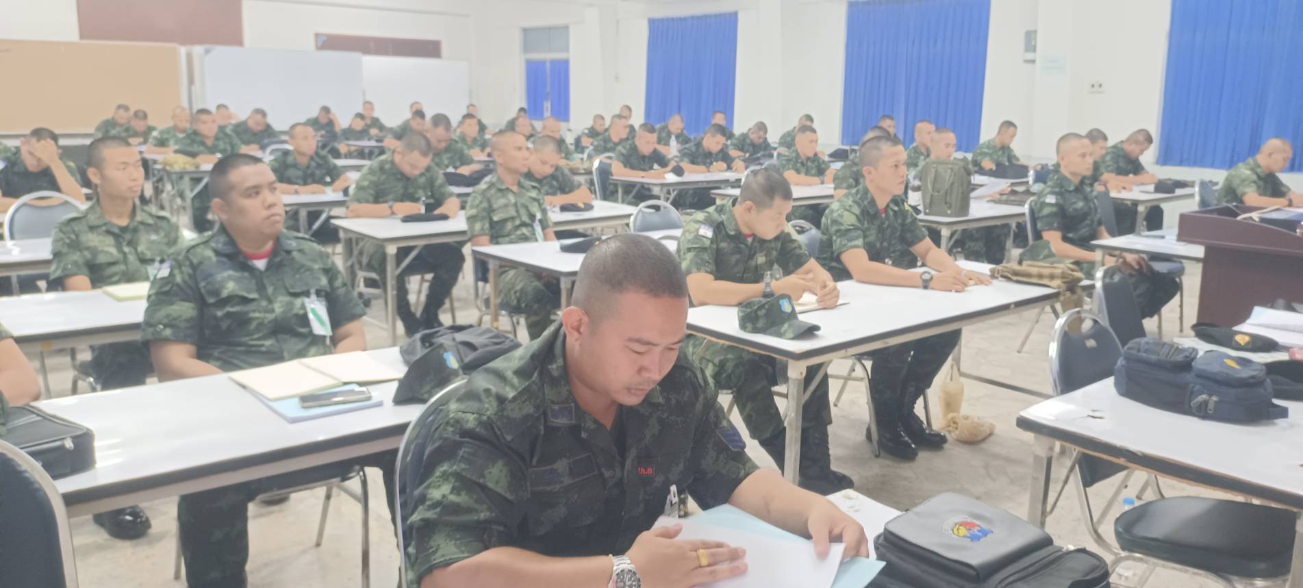 เมื่อวันที่ 21 ส.ค. 68 เวลา 0800-1200 แผนกวิชาฝ่ายอำนวยการ กศ.รร.ม.ศม. โดย อจ.รร.ศรภ.ทบ. (อจ.ภายนอก) ดำเนินการฝึกอบรม วิชาการรักษาความปลอดภัย ให้กับ นสน. หลักสูตรนายสิบชั้นต้น เหล่า ม. รุ่นที่ 3 ปี 68 ณ ห้องเรียนสิรินุกิจ