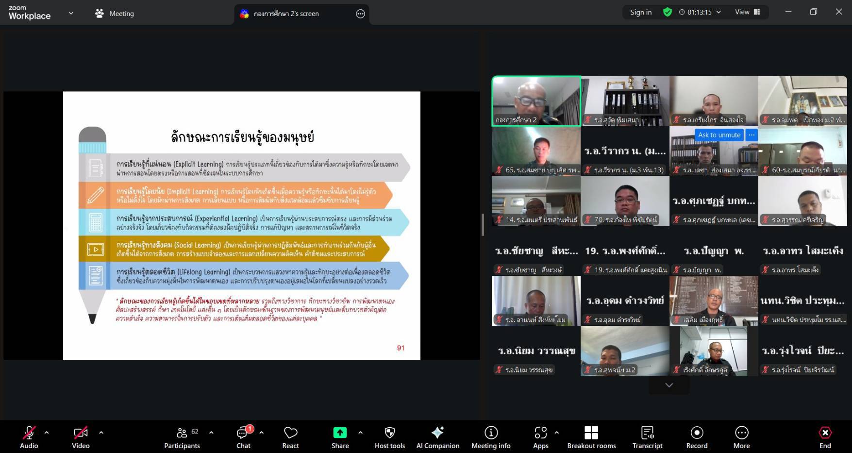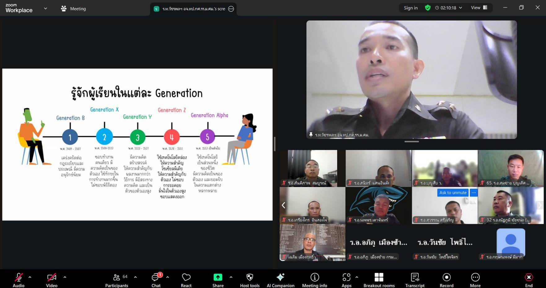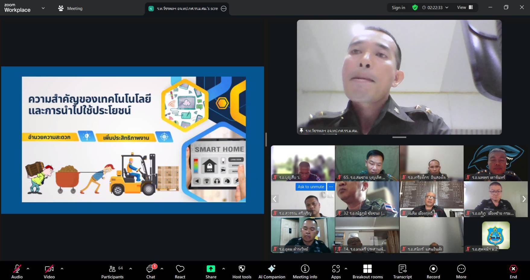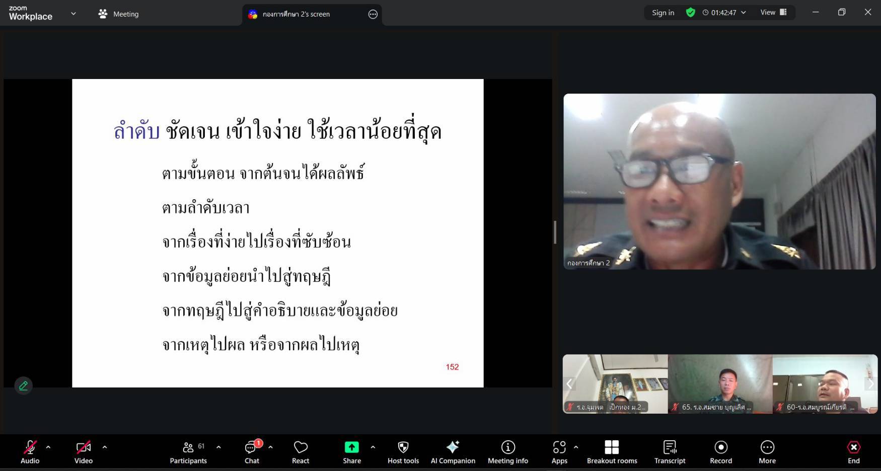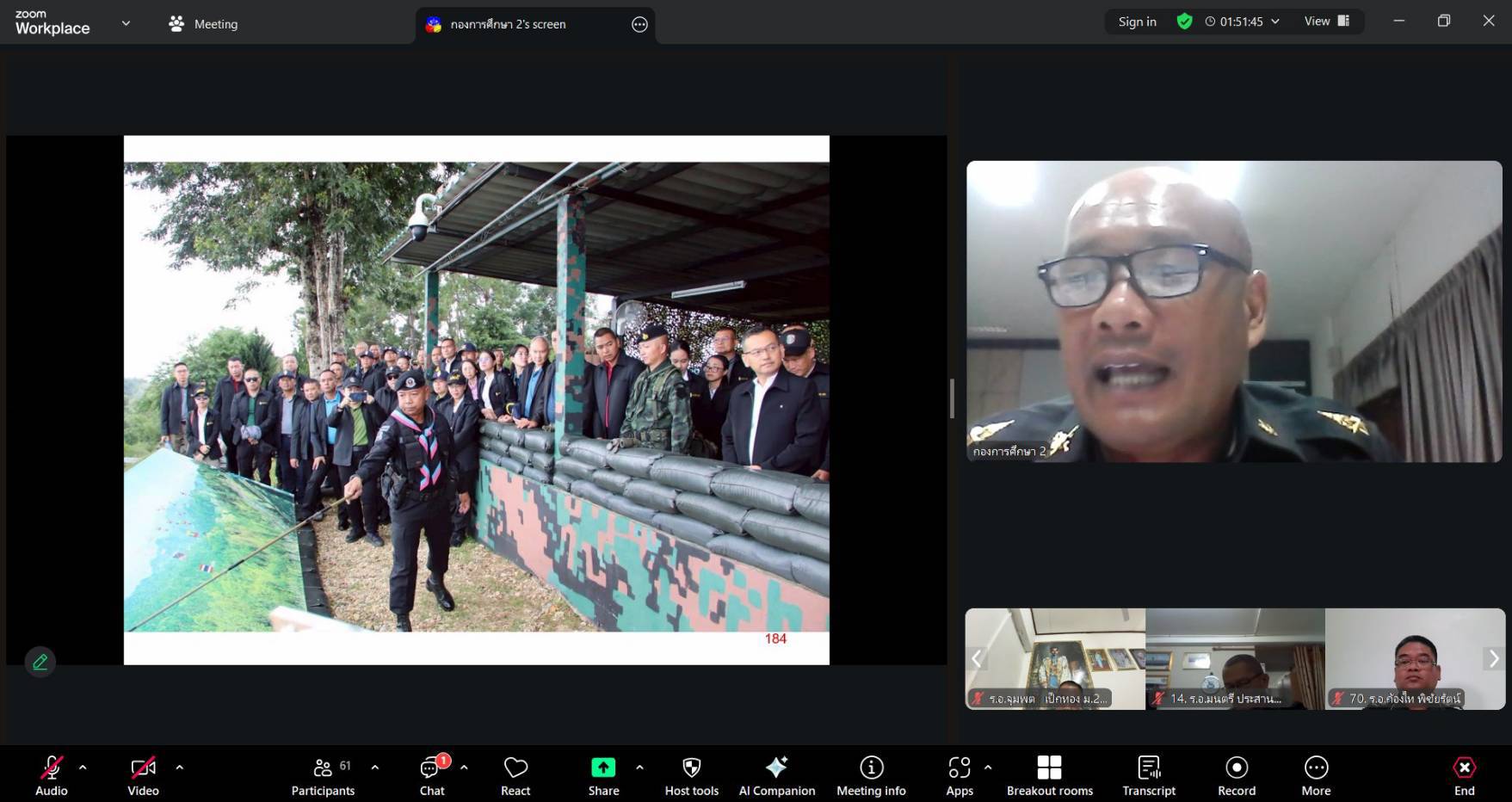 เมื่อวันที่ 16 ต.ค. 68 เวลา 1000-1200 แผนกวิชาทั่วไป กศ.รร.ม.ศม. ดำเนินการฝึกอบรม วิชาครูทหารและการบรรยายสรุปในหัวข้อนวัตกรรมทางการศึกษา การประยุกต์ใช้ Applications Online (Google Apps for Education), และ การประยุกต์ใช้ AI ในการปฏิบัติงาน ให้กับ นทน. หลักสูตรชั้นนายพัน เหล่า ม. ปี 69 ผ่านระบบ Zoom Cloud Meeting (ห้วงฝึกอบรมด้วยตนเอง ณ ที่ตั้งหน่วย)
