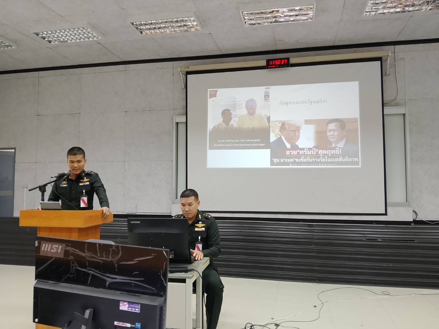 เมื่อวันที่ 21 พ.ย. 68 เวลา 0800 - 1700 แผนกวิชาทั่วไป กศ.รร.ม.ศม. ดำเนินการฝึกอบรม วิชาผู้นำหน่วย ผู้สอน พ.อ. สรชำนาญ วาลนวลแก้ว อจ.หน.วิชาทั่วไป ฯ และ วิชาภาพถ่ายทางอากาศ (Online) ผู้สอน พ.อ. ณัฐวัฒน์ บุญแต่ง นปก.ประจำ สบ.ทบ. ให้กับ นทน. หลักสูตรชั้นนายพัน เหล่า ม. ปี 69 ณ ห้องเรียนรวม 150 ที่นั่ง