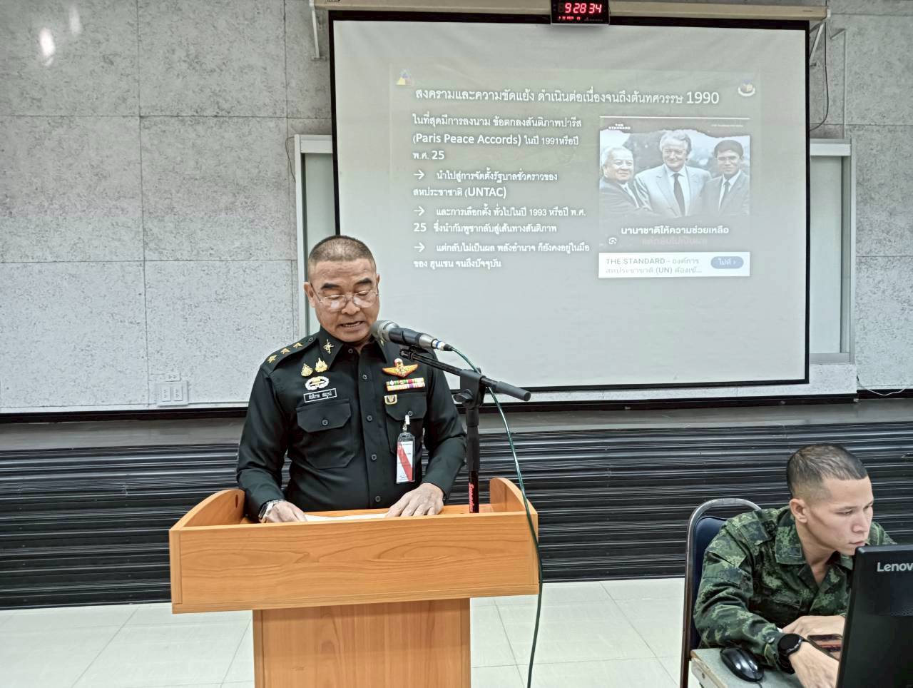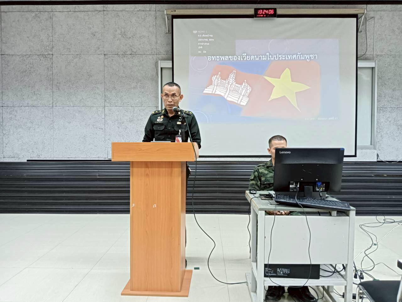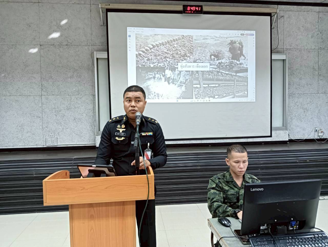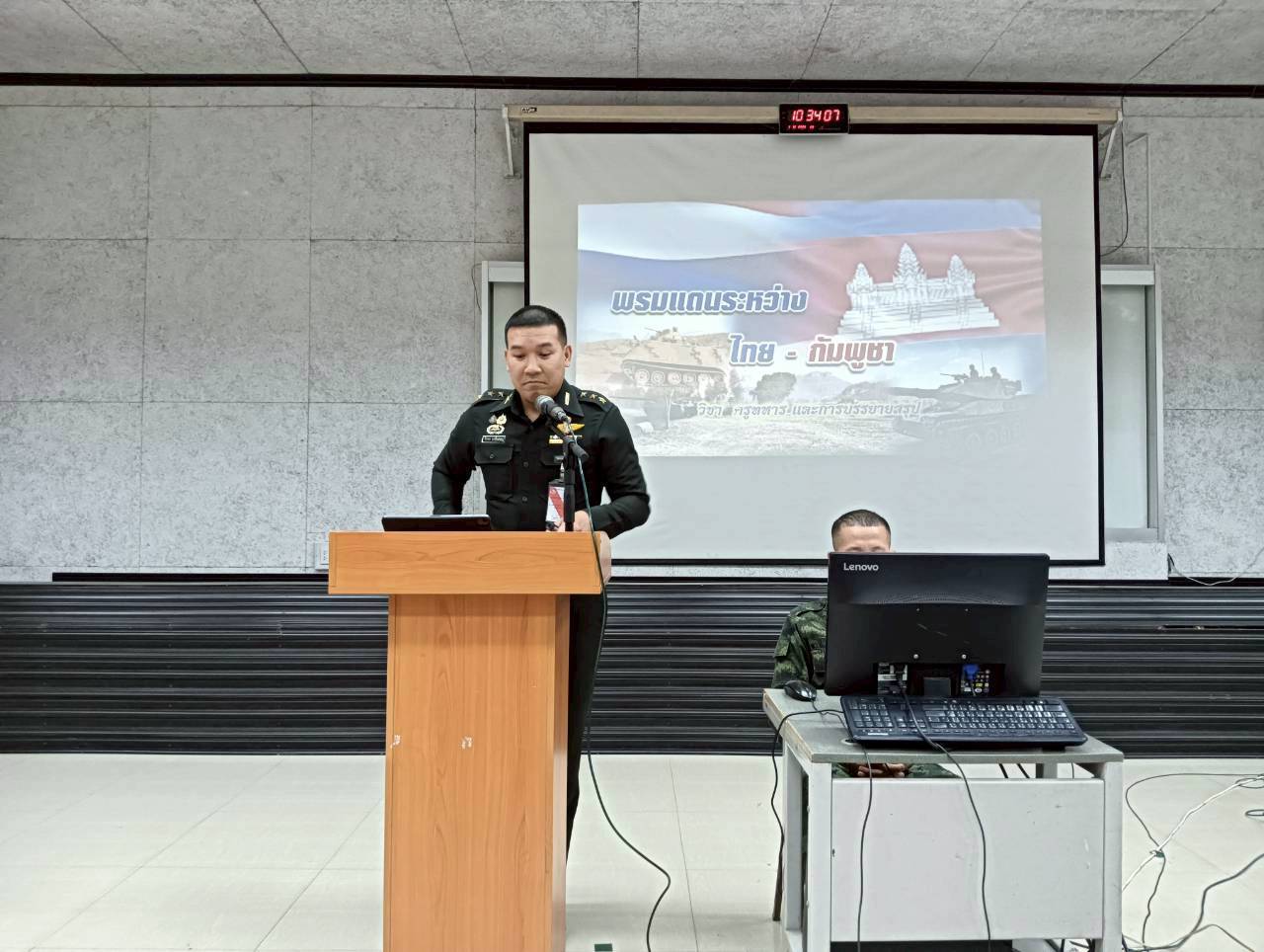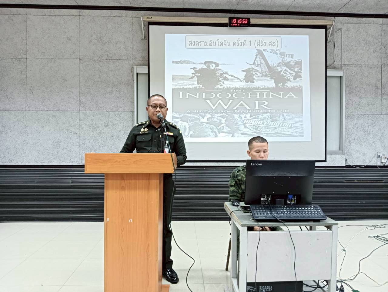 เมื่อวันที่ 1 ธ.ค. 68 เวลา 0800 - 1600 แผนกวิชาทั่วไป กศ.รร.ม.ศม. โดย พ.ต. รัตติกร ทองเขียว อจ.แผนกวิชาทั่วไป ฯ ดำเนินการฝึกอบรม วิชาครูทหารและการบรรยายสรุปทางทหาร ให้กับ นทน. หลักสูตรชั้นนายพัน เหล่า ม. ปี 69 ณ ห้องเรียนรวม 150 ที่นั่ง