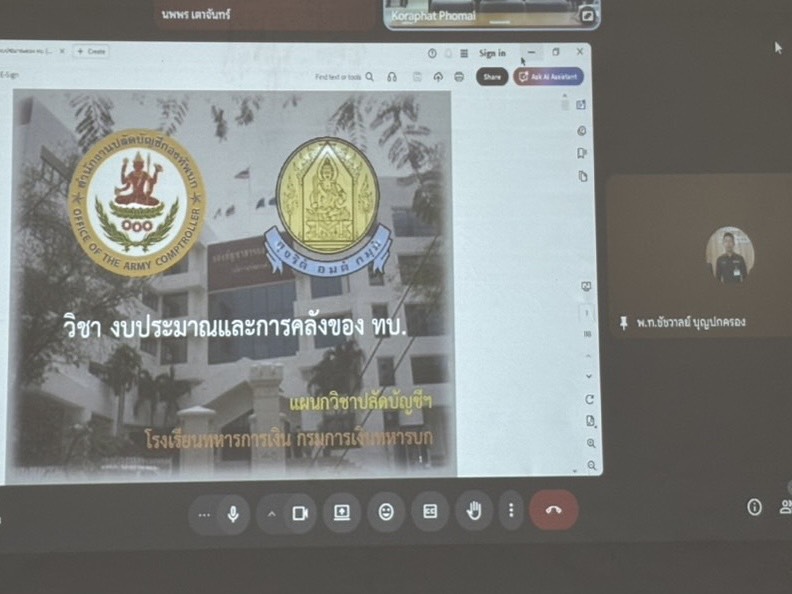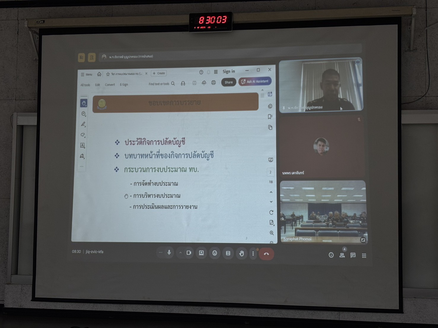 เมื่อวันที่ 8 ธ.ค. 68 เวลา 0800 - 1700 แผนกวิชาฝ่ายอำนวยการ กศ.รร.ม.ศม. โดย พ.ท.ชัชวาล บุญปกครอง ตำแหน่ง อจ.รร.กง.กง.ทบ. ดำเนินการฝึกอบรม วิชาปลัดบัญชี ให้กับ นทน. หลักสูตรชั้นนายพัน เหล่า ม. ปี 69 ณ ห้องเรียนรวม 150 ที่นั่ง