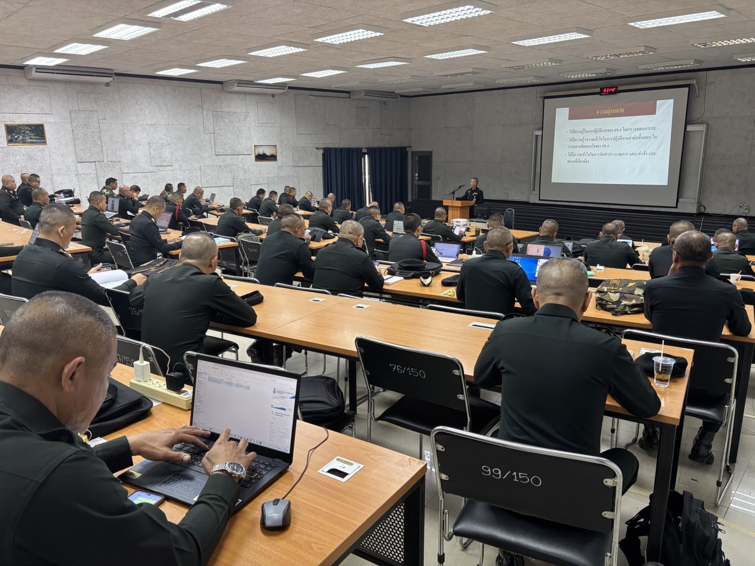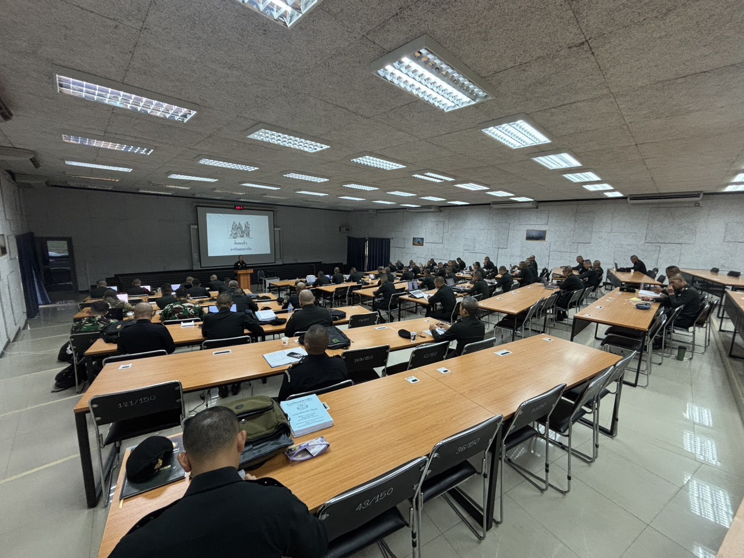 วันที่ 11 ธ.ค. 68 เวลา 0800 - 1700 แผนกวิชาฝ่ายอำนวยการ กศ.รร.ม.ศม. รับผิดชอบการฝึกอบรม หลักสูตรชั้นนายพัน เหล่า ม. ปี 69 ดำเนินการฝึกอบรม วิชาการแสวงข้อตกลงใจ ฝอ.4 อาจารย์ผู้สอน พ.ท.จาตุรงค์ แก้วสุวรรณ ตำแหน่ง อจ.แผนกวิชาฝ่ายอำนวยการ กศ.รร.ม.ศม. ณ ห้องเรียน 150 ที่นั่ง