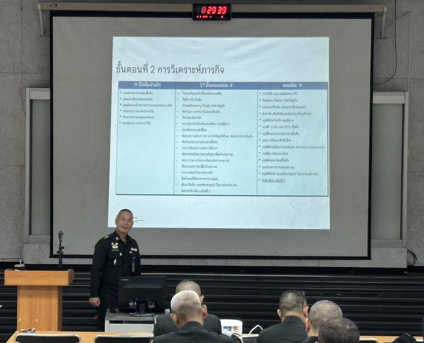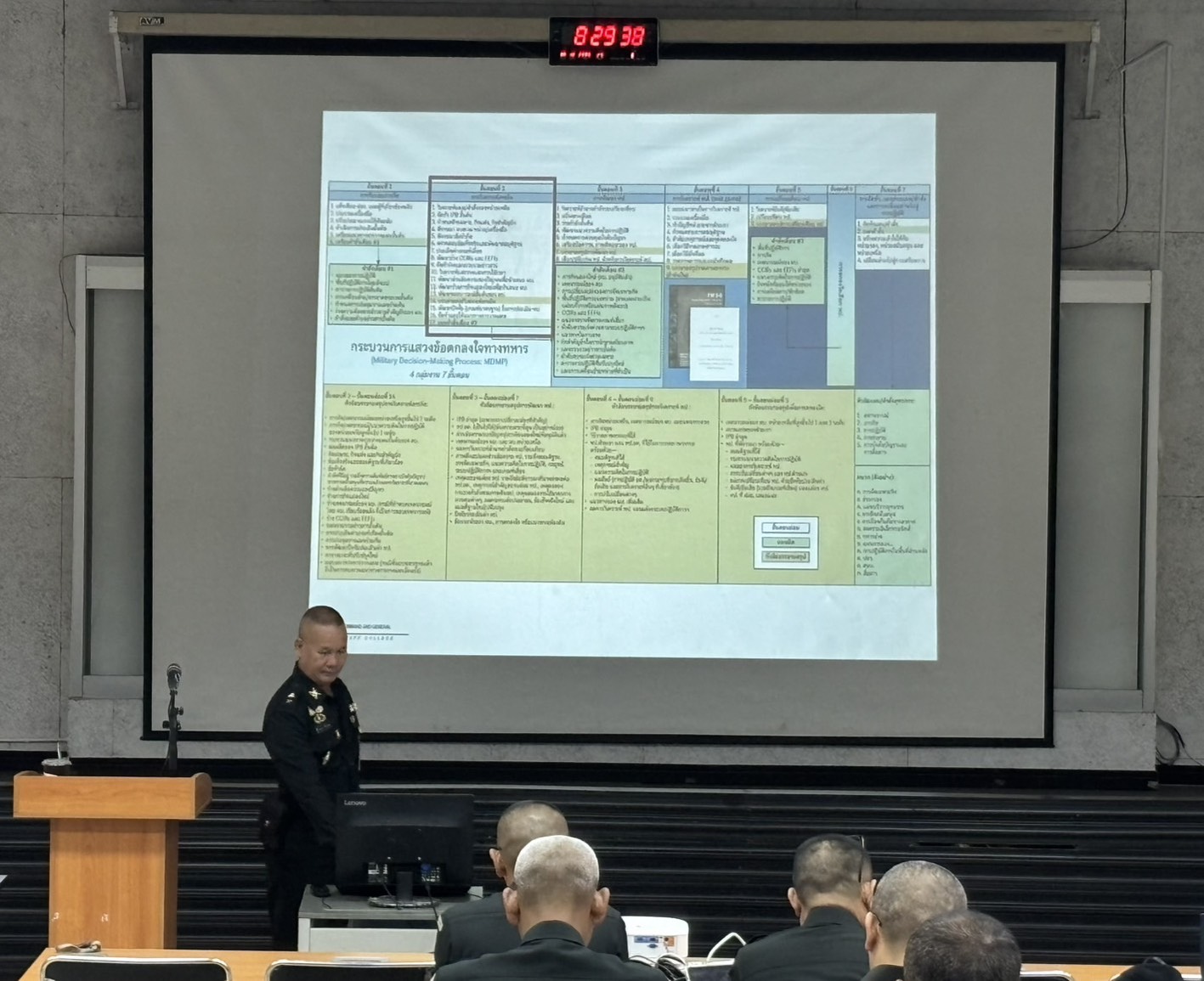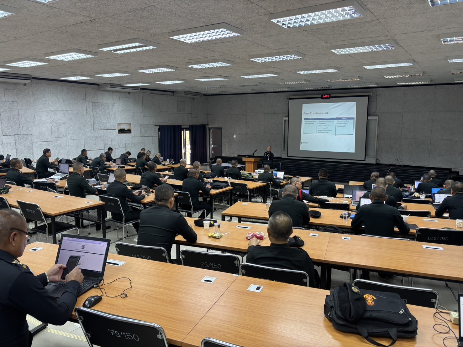 วันที่ 18 ธ.ค. 68 เวลา 0800 - 1600 แผนกวิชาฝ่ายอำนวยการ กศ.รร.ม.ศม. รับผิดชอบการฝึกอบรม หลักสูตรชั้นนายพัน เหล่า ม. ปี 69 ดำเนินการฝึกอบรม วิชาการแสวงข้อตกลงใจ ฝอ.5 อาจารย์ผู้สอน พ.ท.จาตุรงค์ แก้วสุวรรณ ตำแหน่ง อจ.แผนกวิชาฝ่ายอำนวยการ กศ.รร.ม.ศม. ณ ห้องเรียน 150 ที่นั่ง