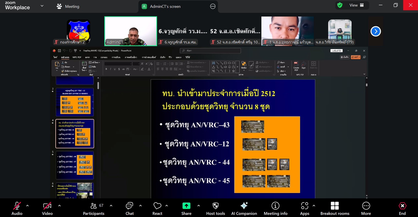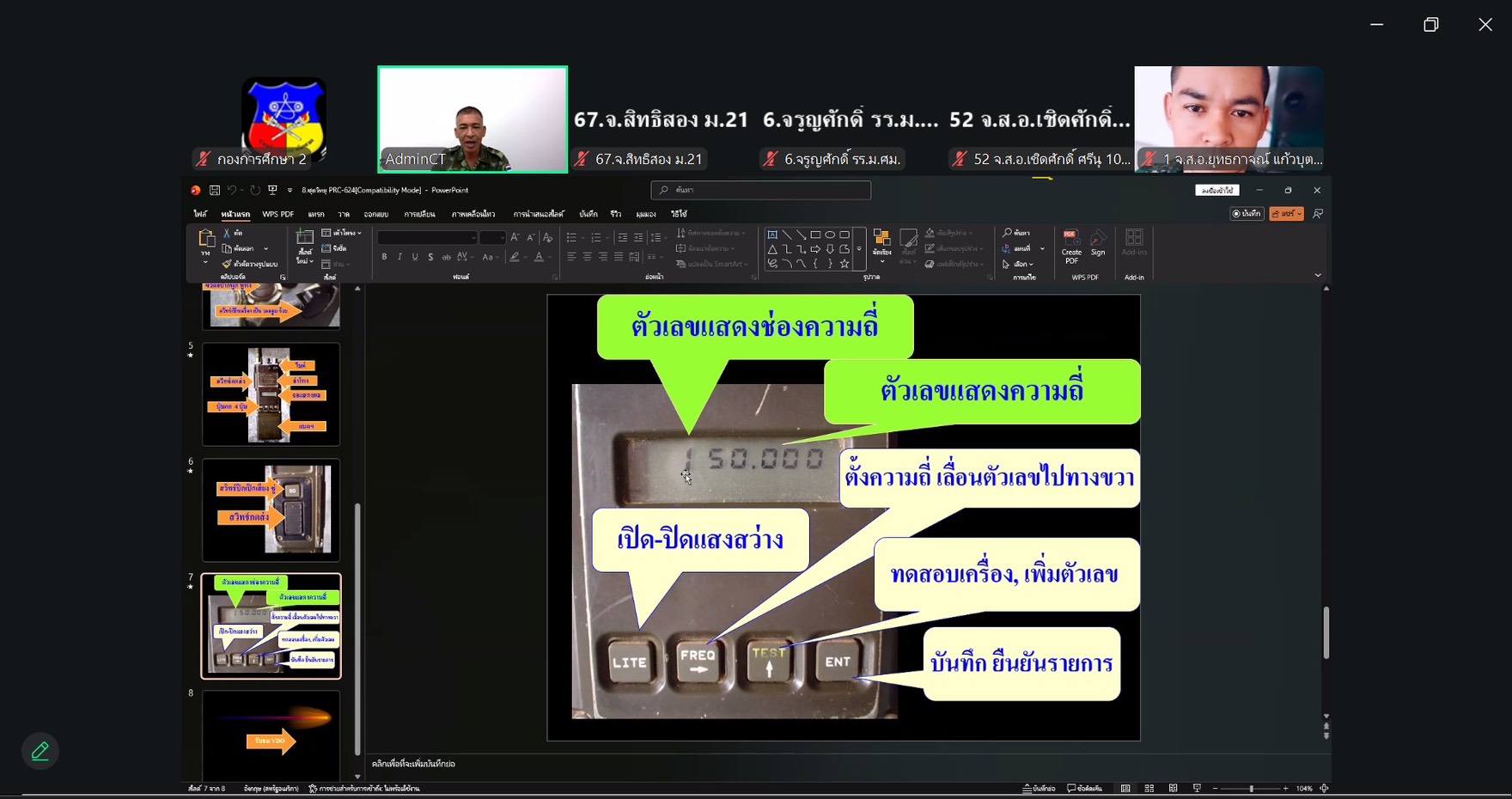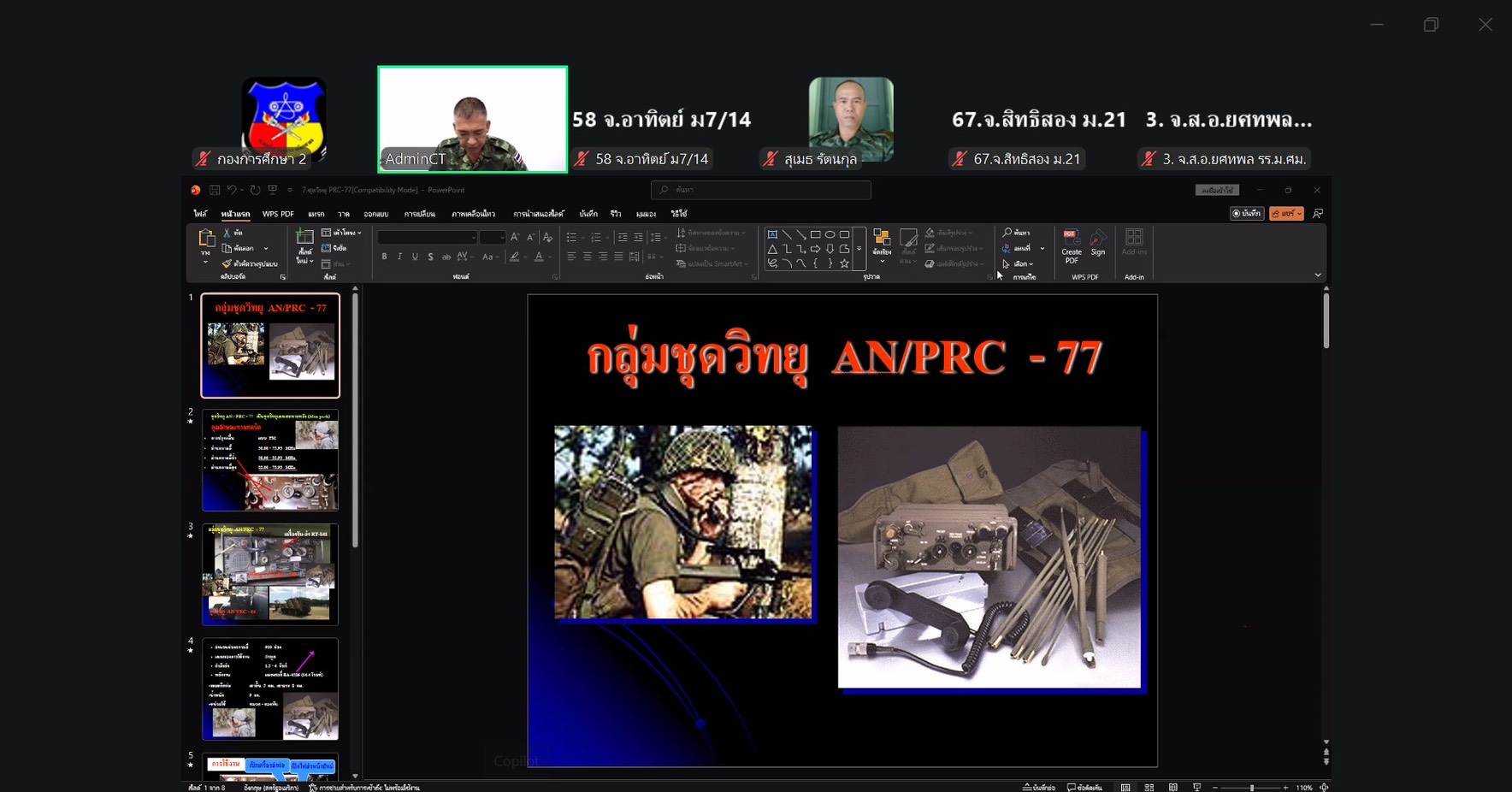วันที่ 23 ธ.ค. 68 เวลา 0800 - 1500แผนกวิชาสื่อสาร กศ.รร.ม.ศม. รับผิดชอบการฝึกอบรม หลักสูตรนายสิบอาวุโส เหล่า ม. ปี 69 ดำเนินการฝึกอบรม วิชากลุ่มชุดวิทยุ AN/PRC - 77, PRC - 710, และ PRC - 624 วิชากลุ่มชุดวิทยุ AN/VRC -12 และ AN/VRC - 1 วิชากลุ่มชุดวิทยุ CNR - 900 และ T900 และ วิชาเครื่องมือสื่อสารประเภททางสาย ผ่านระบบ ZOOM Cloud Meeting อาจารย์ผู้สอน จ.ส.อ.รุ่งแสง ภู่งามชื่น ครู แผนกวิชาสื่อสาร กศ.รร.ม.ศม.