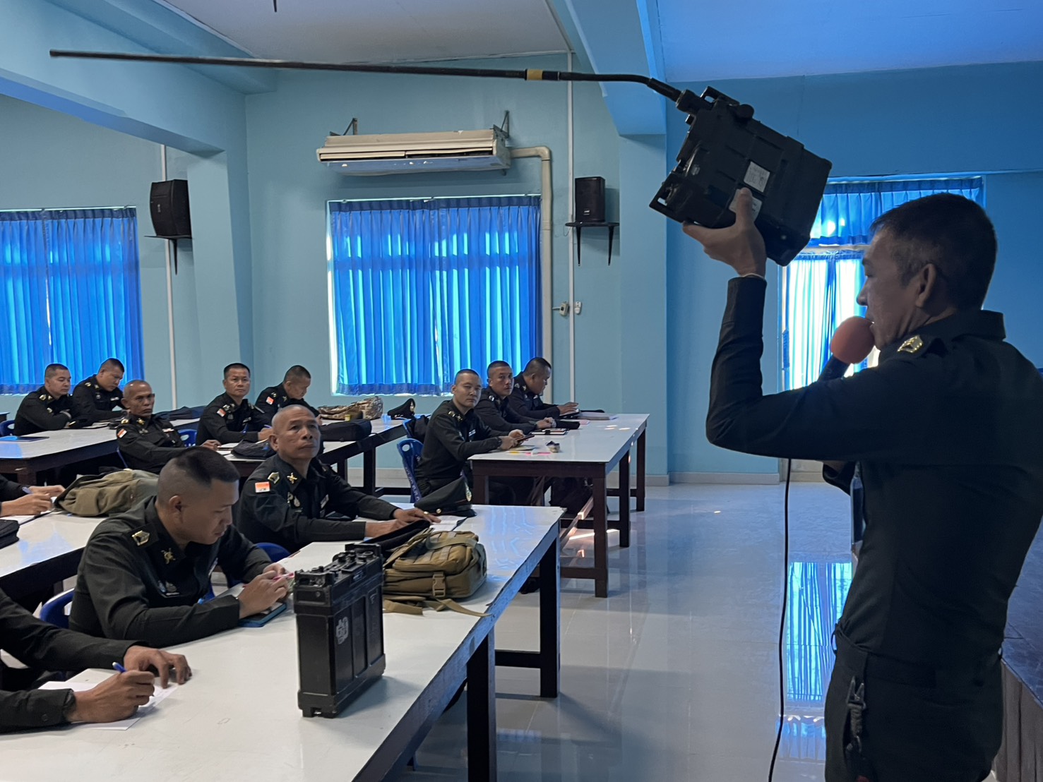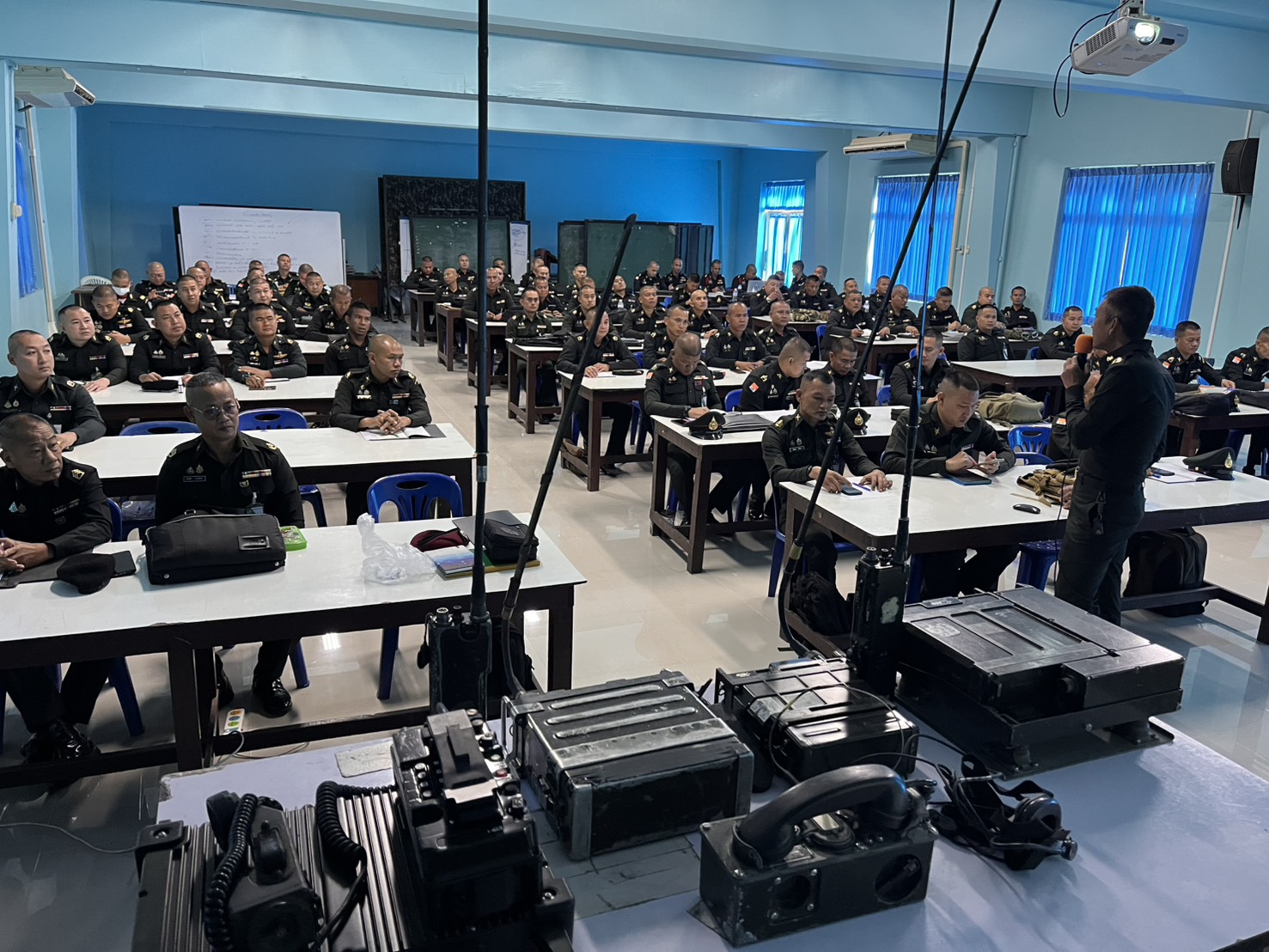 วันที่ 7 ม.ค. 69 เวลา 0800 - 1400 แผนกวิชาสื่อสาร กศ.รร.ม.ศม. รับผิดชอบการฝึกอบรม วิชากลุ่มชุดวิทยุ CNR-900,900T, กลุ่มชุดวิทยุ AN/PRC-77,PRC-624, กลุ่มชุดวิทยุ AN/VRC-12 และ เครื่องติดต่อภายในรถ AN/VIC-1 และ วิชา เครื่องมือสื่อสารประเภททางสาย หลักสูตรนายสิบอาวุโส เหล่า ม. รุ่นที่ 1 ปี 69 อาจารย์ผู้สอน จ.ส.อ.รุ่งแสง ภู่งามชื่น และ จ.ส.ท.อรรถพล บรรลือทรัพย์ ณ ห้องเรียนแผนกวิชายุทธวิธี