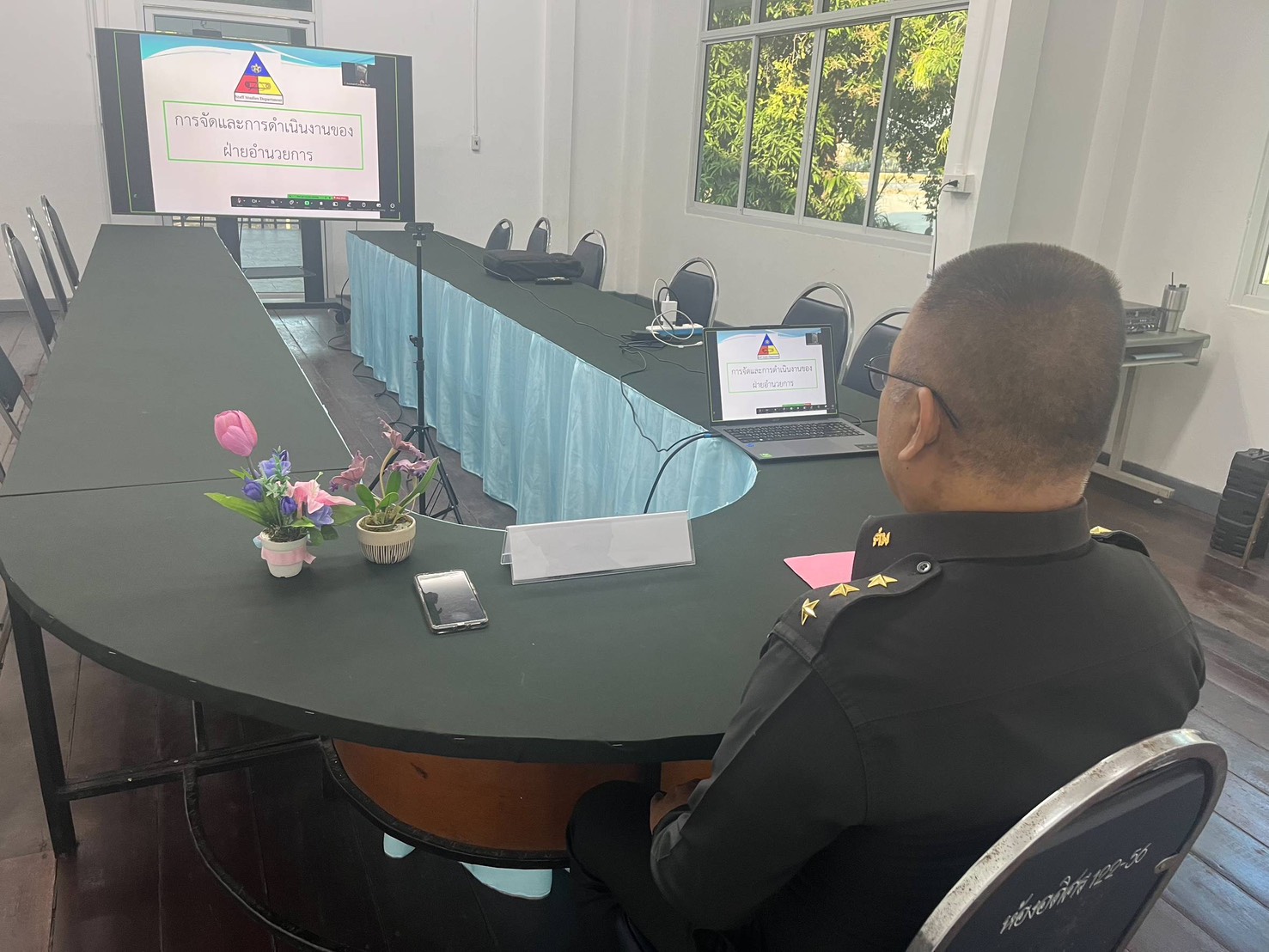 วันที่ 14 ม.ค. 69 เวลา 0800 - 1200 แผนกวิชาฝ่ายอำนวยการ กศ.รร.ม.ศม. โดย .อ.กล้าประจญ สาคำภีร์ ตำแหน่ง ฝอ.1 ม.พัน.27 ชรก.แผนกวิชาฝ่ายอำนวยการ กศ.รร.ม.ศม. รับผิดชอบการฝึกอบรม วิชางานในหน้าที่ฝ่ายอำนวยการ ผ่านระบบ ZOOM Cloud Meeting ให้กับ นสน. หลักสูตรนายสิบชั้นต้น เหล่า ม. รุ่นที่ 1 ปี 69 ห้วงศึกษาผ่านสื่ออิเล็กทรอนิกส์