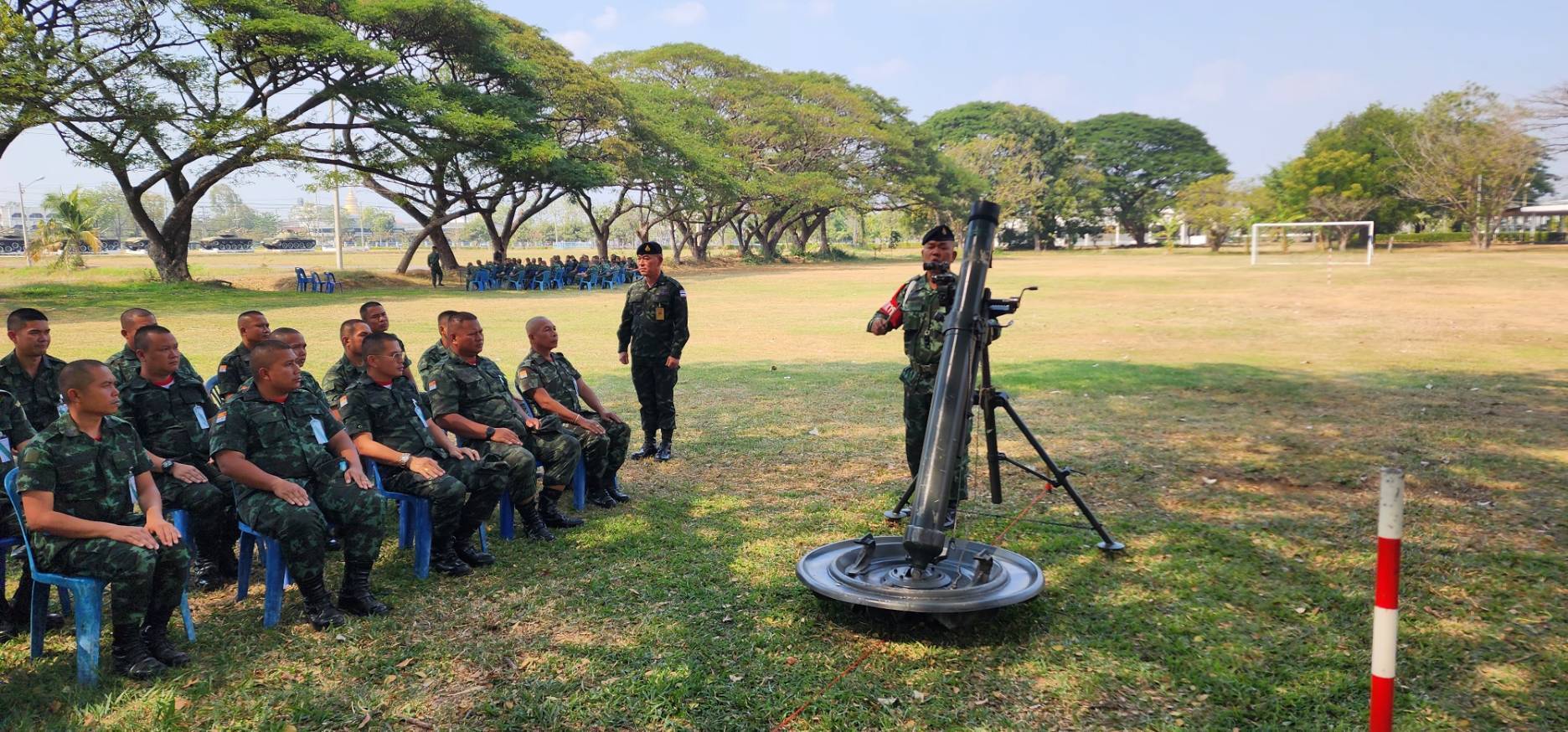 วันที่ 16 ม.ค. 69 เวลา 0800-1700 แผนกวิชาอาวุธ กศ.รร.ม.ศม. โดย พ.ท. ศรายุทธ ทรัพย์พันแสน อจ.รร.ป.ศป. ดำเนินการฝึกอบรม วิชาการยิงที่มีการตรวจการณ์ปืนใหญ่ และ ฝึกปฏิบัติวิชาเครื่องยิงลูกระเบิด ณ สนามฝึกด้านหน้าแผนกวิชาอาวุธฯ โดยแบ่งการฝึกออกเป็น ๒ สถานี (การใช้กล้องกองร้อยชนิดเข็มทิศ M2A2 และ ค.ขนาด ๑๒๐ มม.) โดย อจ., ครู และ ผช.ครู ฯ ให้กับ นสน. หลักสูตรนายสิบอาวุโส เหล่า ม. รุ่นที่ 1 ปี 69 ณ ห้องเรียน อว.1