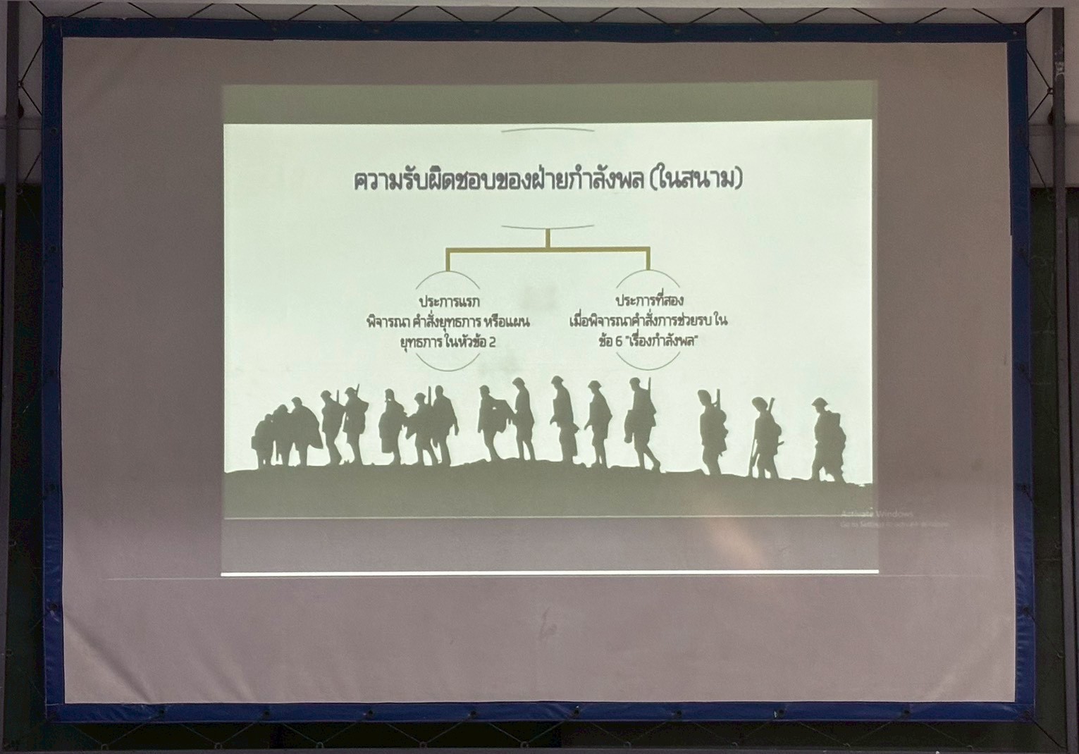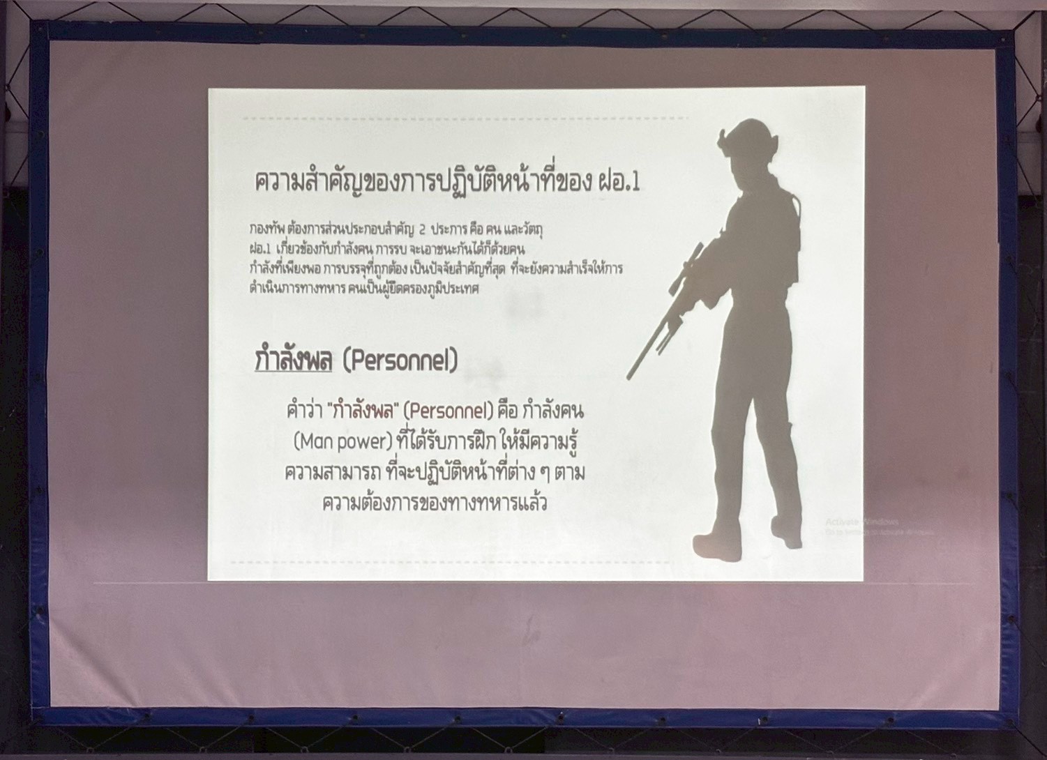 เมื่อวันที่ 24 ก.พ. 69 เวลา 0800 - 1700 แผนกวิชาฝ่ายอำนวยการ กศ.รร.ม.ศม. ดำเนินการฝึกอบรม วิชาการกำลังพล, วิชาการข่าว, วิชาการฝึกการยุทธ และ วิชาการส่งกำลังบำรุง ให้กับ หลักสูตรนายสิบอาวุโส เหล่า ม. รุ่นที่ 1 ปี 69 ณ ห้องเรียนสิรินุกิจ