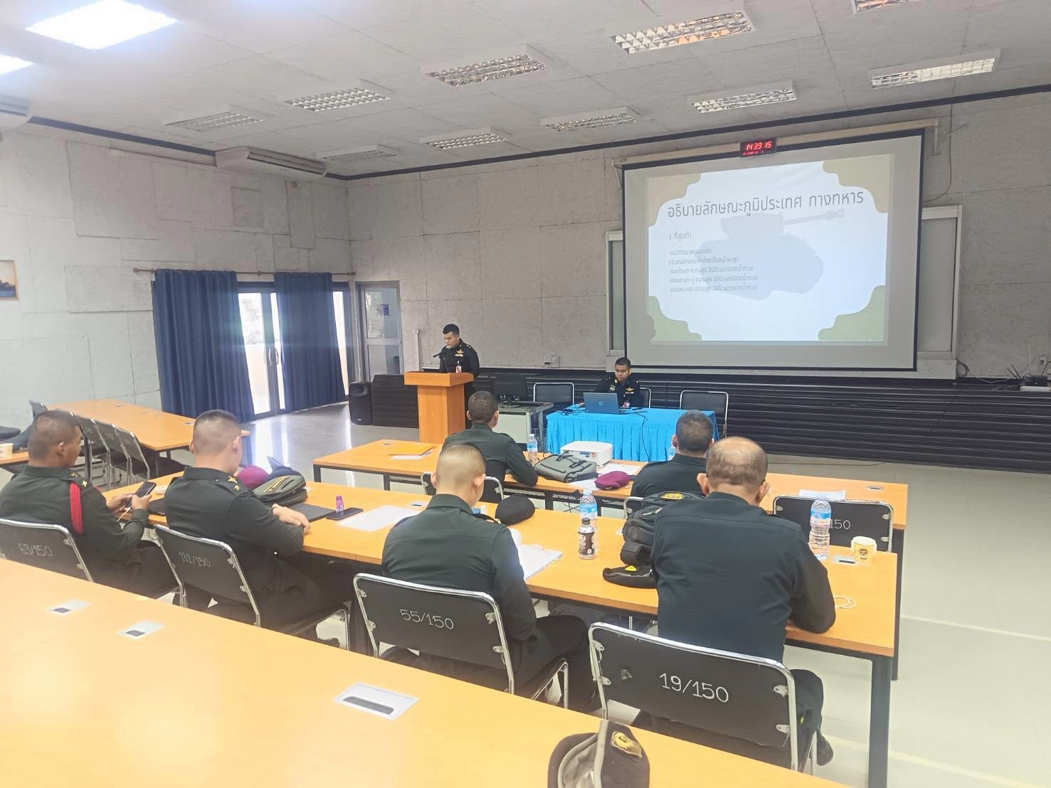 วันจันทร์ที่ 23 ก.พ. 69 เวลา 0800 - 1600 แผนกวิชาทั่วไป กศ.รร.ม.ศม. รับผิดชอบการฝึกอบรม วิชาการบรรยายสรุป, ครูทหาร และการฝึกที่เน้นผลการปฏิบัติ หลักสูตรชั้นนายร้อย เหล่า ม. ปี 69 อาคารเรียนรวม 150 ที่นั่ง
