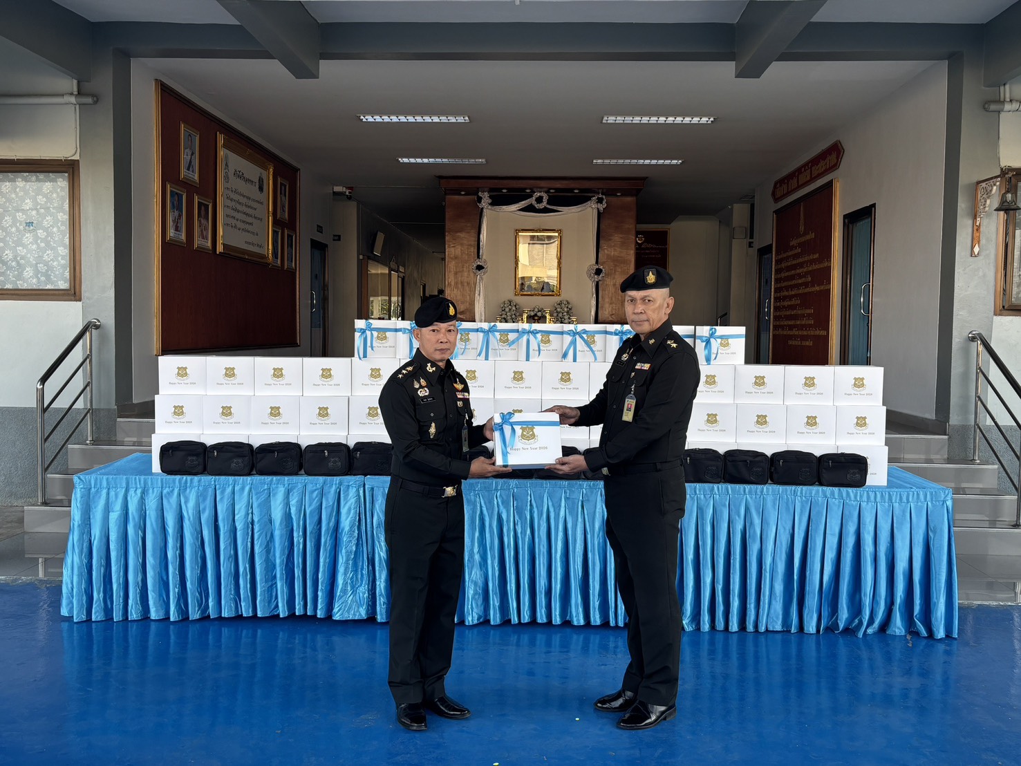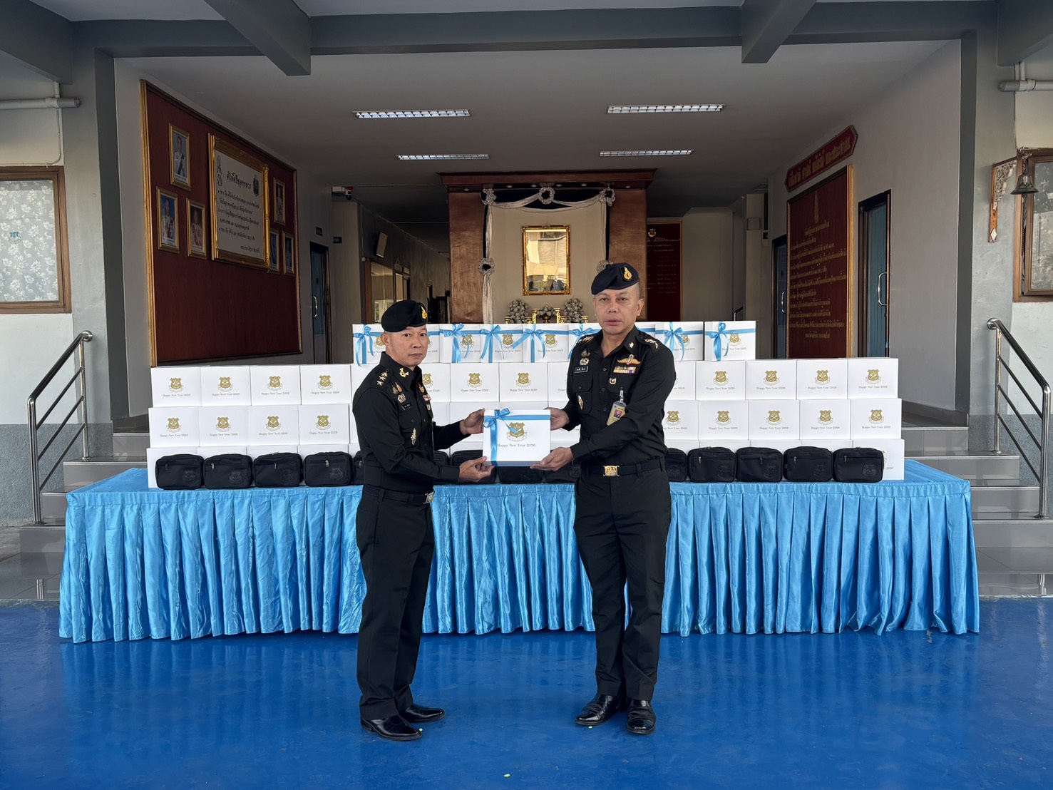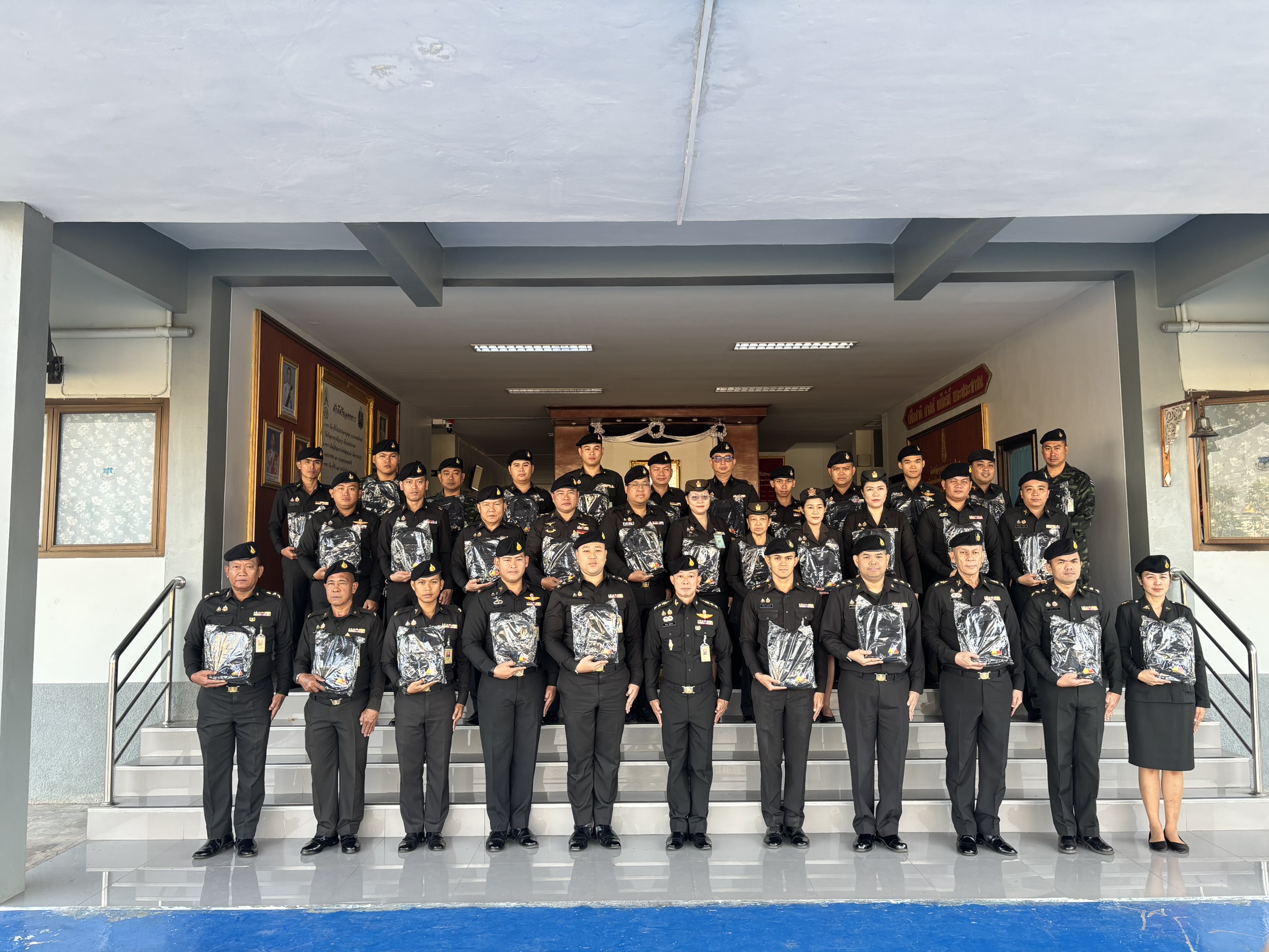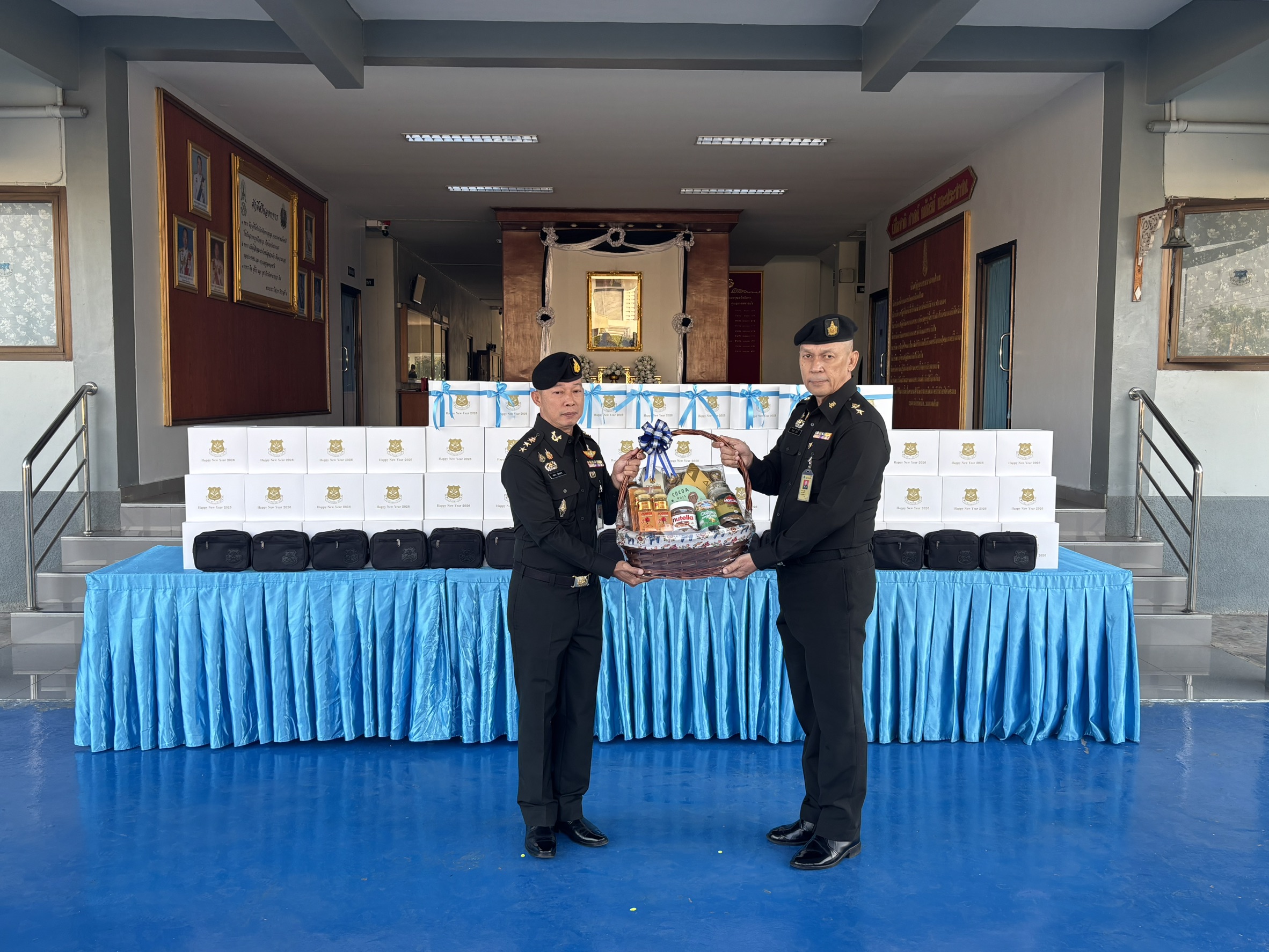 เมื่อวันที่ 300800 ธ.ค. 68 รอง ผบ.รร.ม.ศม. ได้กรุณามอบของขวัญเนื่องในโอกาสเทศกาลปีใหม่ขึ้นปีใหม่ ประจำปี พุทธศักราช 2569 ให้กับกำลังพล รร.ม.ศม. โดยมีผู้แทนหน่วย เป็นผู้รับมอบ ณ บริเวณด้านหน้า บก.รร.ม.ศม. ในการนี้ ผอ.กศ.รร.ม.ศม. เป็นผู้แทนกำลังพล รร.ม.ศม. ได้ดำเนินการกล่าวอวยพรปีใหม่ และผู้แทนหน่วย ได้มอบกระเช้าของขวัญ เนื่องในวาระขึ้นปีใหม่ ให้กับ รอง ผบ.รร.ม.ศม.