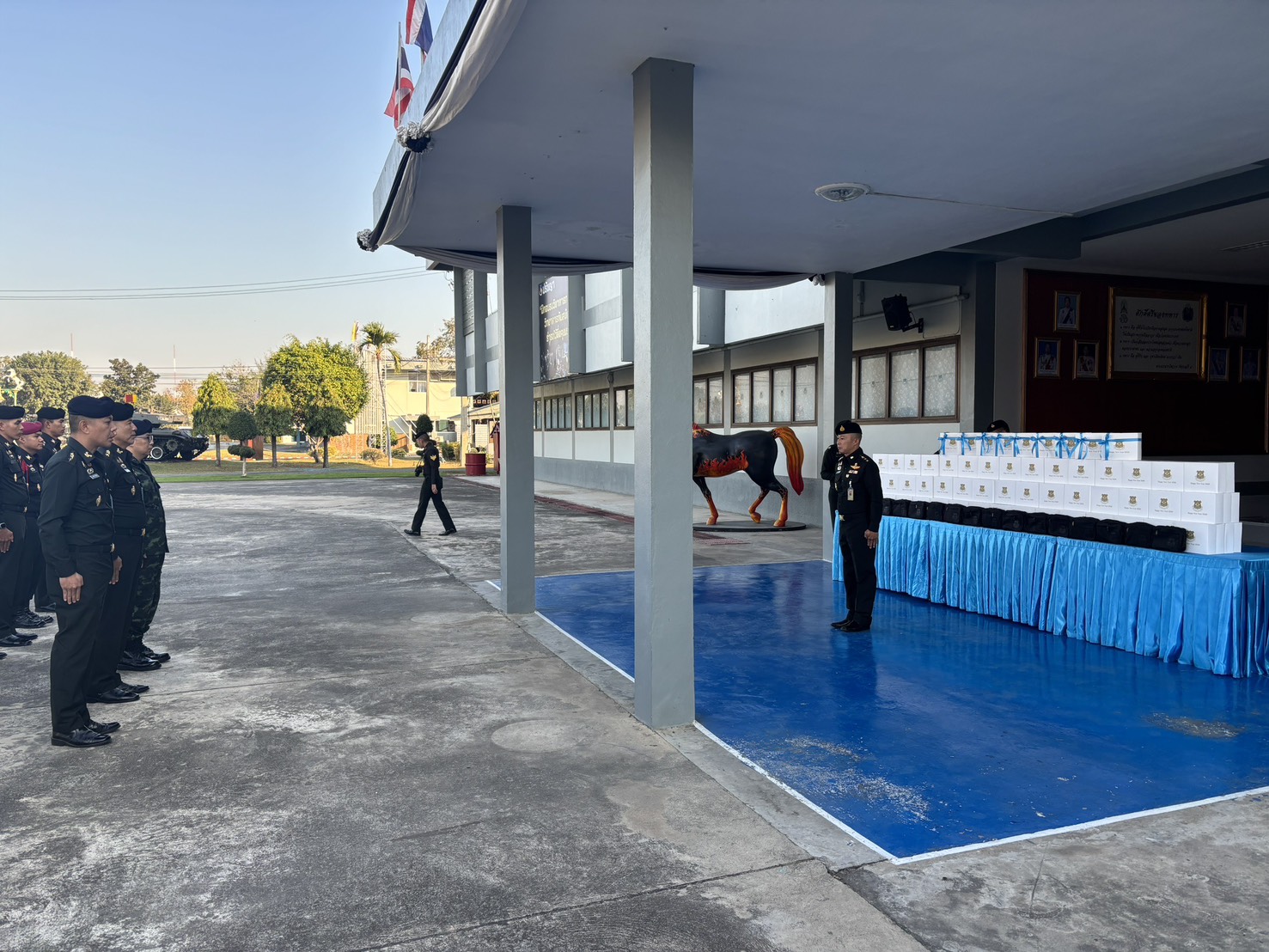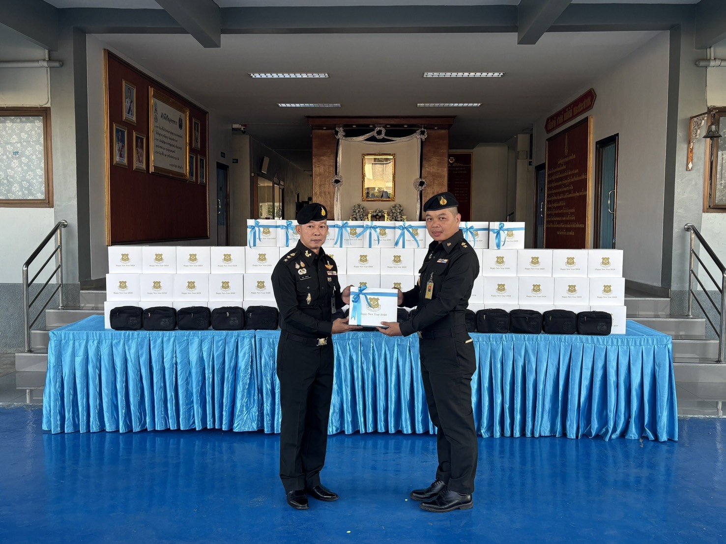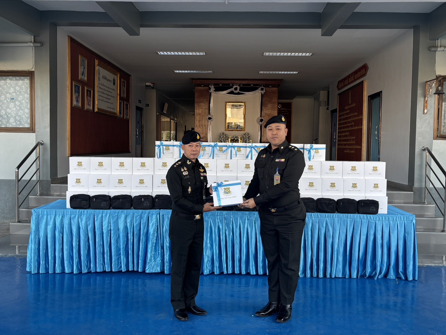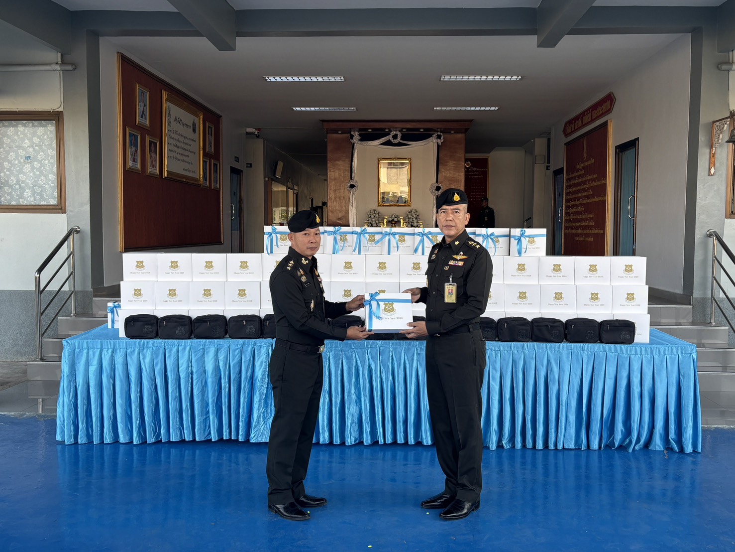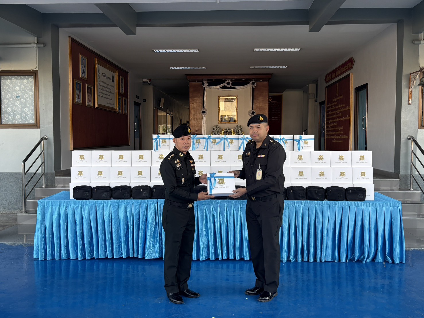 เมื่อวันที่ 300800 ธ.ค. 68 รอง ผบ.รร.ม.ศม. ได้กรุณามอบของขวัญเนื่องในโอกาสเทศกาลปีใหม่ขึ้นปีใหม่ ประจำปี พุทธศักราช 2569 ให้กับกำลังพล รร.ม.ศม. โดยมีผู้แทนหน่วย เป็นผู้รับมอบ ณ บริเวณด้านหน้า บก.รร.ม.ศม. ในการนี้ ผอ.กศ.รร.ม.ศม. เป็นผู้แทนกำลังพล รร.ม.ศม. ได้ดำเนินการกล่าวอวยพรปีใหม่ และผู้แทนหน่วย ได้มอบกระเช้าของขวัญ เนื่องในวาระขึ้นปีใหม่ ให้กับ รอง ผบ.รร.ม.ศม.