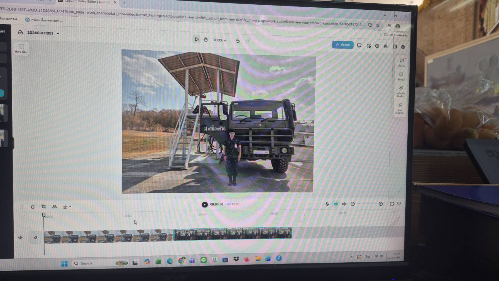 เมื่อวันที่ 17 มี.ค.69 จ.ส.อ.สายัน จันทร์สมัคร ได้นำความรู้ที่ได้รับในวิชาคอมพิวเตอร์ Capcut ไปจัดการปฏิบัติงานการทำสื่อนำเสนอ ผบ.ชา และประชาสัมพันธ์หน่วยด้านกิจการพลเรือน ณ ม.พัน.27